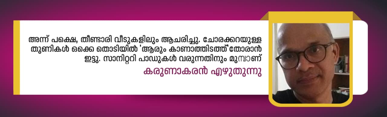 പക്ഷെ, നല്ല ഉറപ്പുണ്ട് ഈ സ്ത്രീകള് ഒന്നും ഇപ്പോള് തീണ്ടാരിത്തുണി, ആരും കാണാത്തിടത്ത് ഉണക്കാന് ഇടുന്നവരല്ല