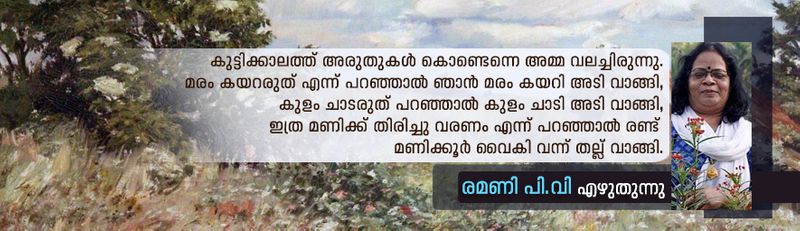 എന്തൊക്കെ ചെയ്യരുതെന്ന് പറഞ്ഞോ അതൊന്നും ഞാൻ അനുസരിച്ചില്ല, പക്ഷേ അതിനിടയിലും അമ്മ പറയാത്ത അരുതുകൾ പോലും ഞാൻ സ്വയം ചെയ്യരുതെന്ന് പഠിച്ചു. പിൻകാല ജീവിതത്തിലേക്കുള്ള വലിയ പാഠങ്ങളായിരുന്നു എന്റെ അമ്മ പഠിപ്പിച്ച ഓരോന്നും. പിന്നെ, ഞാനെങ്ങനെ പെൺജീവിതം ജീവിച്ചെന്ന് പറയും?
