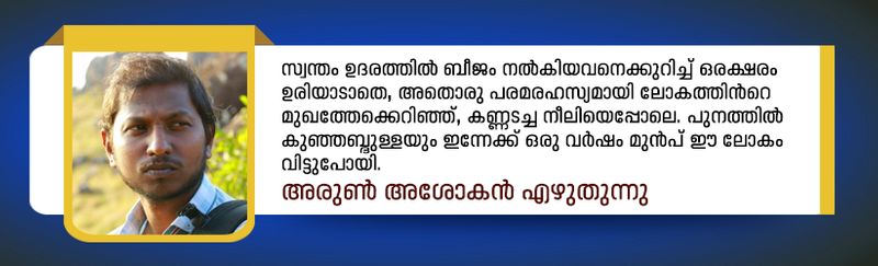സ്വന്തം ഉദരത്തിൽ ബീജം നൽകിയവനെക്കുറിച്ച് ഒരക്ഷരം ഉരിയാടാതെ, അതൊരു പരമരഹസ്യമായി ലോകത്തിന്റെ മുഖത്തേക്കെറിഞ്ഞ്, കണ്ണടച്ച നീലിയെപ്പോലെ. പുനത്തിൽ കുഞ്ഞബ്ദുള്ളയും ഇന്നേക്ക് ഒരു വർഷം മുൻപ് ഈ ലോകം വിട്ടുപോയി.