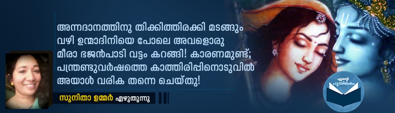 മീരാസാധുവിനെ നമ്മൾ കണ്ടുമുട്ടുന്നത് മഥുരയിലെ 'വൃന്ദാബനി'ലാണ്. രംഗാജി ക്ഷേത്രത്തിൽ ദർശനത്തിനു മണി മുഴങ്ങുമ്പോൾ അഴുക്ക് പുരണ്ട സാരിയുടെ വക്കുയർത്തിപ്പിടിച്ച്, ഒരു കയ്യിൽ വടിയും, മറു കയ്യിൽ തൂക്കിയിട്ട ചോറ്റുപാത്രവുമായി, ചാണകത്തിന്റെയും മൂത്രത്തിന്റെയും ദുർഗന്ധഭരിതമായ ഗലികളിലൊന്നിലൂടെ, തലമുണ്ഡനം ചെയ്ത സ്ത്രീകൾക്കൊപ്പം ക്ഷേത്രത്തിലേക്കോടിപ്പോകുന്നവളായി. അന്നദാനത്തിനു തിക്കിത്തിരക്കി മടങ്ങും വഴിയിൽ ഉന്മാദിനിയെ പോലെ അവളൊരു മീരാ ഭജൻപാടി വട്ടം കറങ്ങി! കാരണമുണ്ട്; പന്ത്രണ്ടു വർഷത്തെ കാത്തിരിപ്പിനൊടുവിൽ അവൾക്കു മുന്നിൽ അയാൾ- മാധവൻ - വരിക തന്നെ ചെയ്തു.