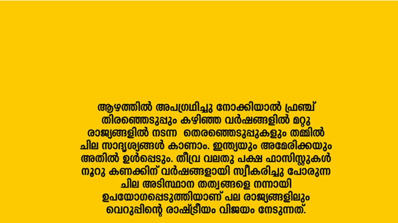ആഴത്തില് അപഗ്രഥിച്ചു നോക്കിയാല് ഫ്രഞ്ച് തിരഞ്ഞെടുപ്പും കഴിഞ്ഞ വര്ഷങ്ങളില് മറ്റു രാജ്യങ്ങളില് നടന്ന തെരഞ്ഞെടുപ്പുകളും തമ്മില് ചില സാദ്ര്യശ്യങ്ങള് കാണാം. ഇന്ത്യയും അമേരിക്കയും അതില് ഉള്പ്പെടും. തീവ്ര വലതു പക്ഷ ഫാസിസ്റ്റുകള് നൂറു കണക്കിന് വര്ഷങ്ങളായി സ്വീകരിച്ചു പോരുന്ന ചില അടിസ്ഥാന തത്വങ്ങളെ നന്നായി ഉപയോഗപ്പെടുത്തിയാണ് പല രാജ്യങ്ങളിലും വെറുപ്പിന്റെ രാഷ്ട്രീയം വിജയം നേടുന്നത്. ഫ്രാന്സിലും കാര്യങ്ങള് ഇതില് നിന്ന് വ്യത്യസ്തമല്ല. പക്ഷെ അത് മനസിലാക്കുന്നതിന് ജര്മനിയില് ഹിറ്റ്ലര് ഉള്പ്പടെയുള്ള ഫാസിസ്റ്റുകള് അധികാരത്തില് എത്താന് സ്വീകരിച്ച നടപടികള് അറിയുന്നത് നന്നായിരിക്കും.