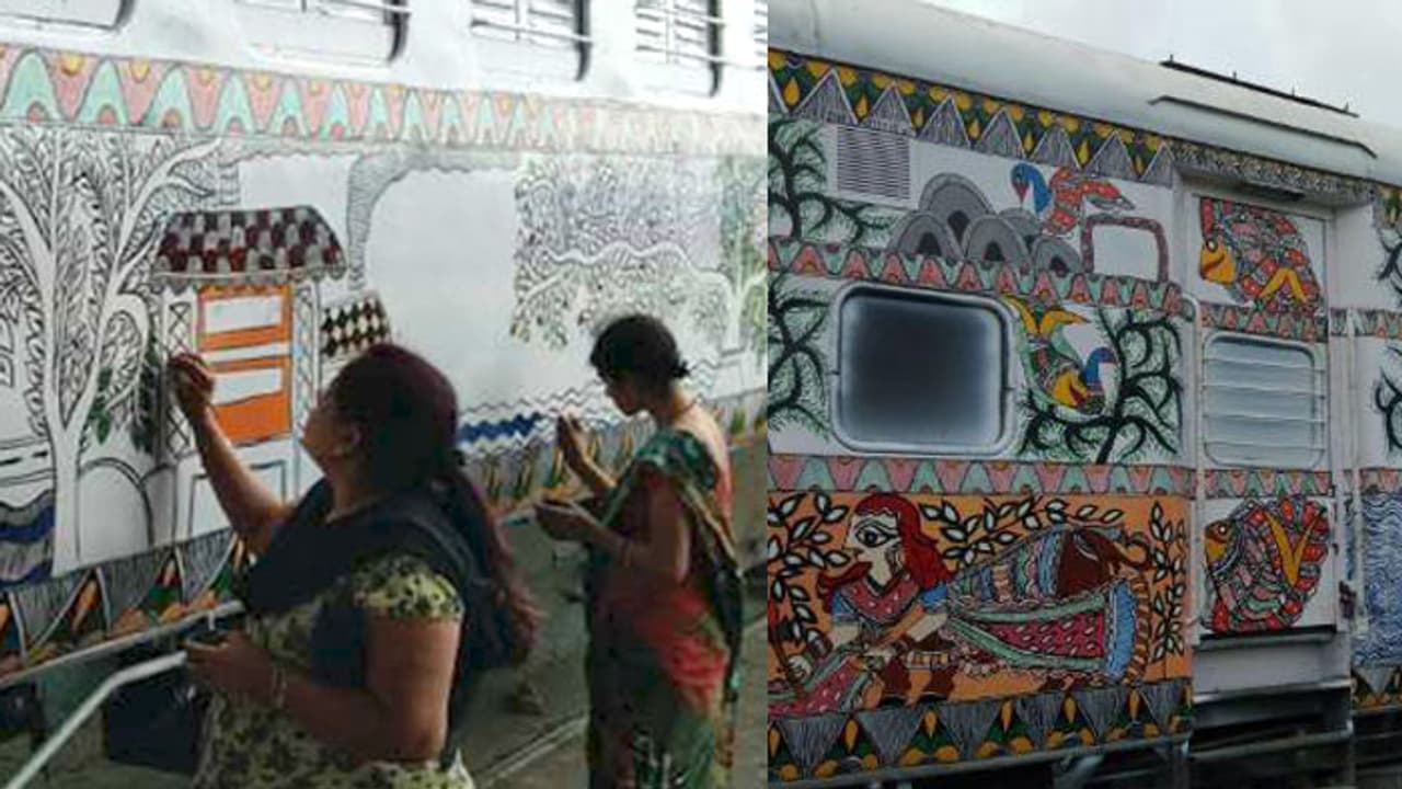 ദില്ലി: ട്രെയിന് ബോഗികളില് നിറയെ ചിത്രങ്ങളായാലെങ്ങനെയിരിക്കും? അതും മധുബനി പോലെ മനോഹരമായ ആര്ട്ട്. മിഥില പെയിന്റിംഗ് അല്ലെങ്കില് മധുബനി പെയിന്റിംഗ് നേപ്പാളിലെ മിഥിലയിലുള്ളവരും, ബീഹാറിലുള്ളവരുമാണ് സാധാരണ ചെയ്യാറ്. വിരലുകൾ, ട്വിഗുകൾ, ബ്രഷുകൾ, പെന്നിന്റെ നിബ്ബുകൾ, തീപ്പെട്ടിക്കൊള്ളികൾ എന്നിവ ഉപയോഗിച്ചാണ് പെയിന്റിംഗ് ചെയ്യുന്നത്.