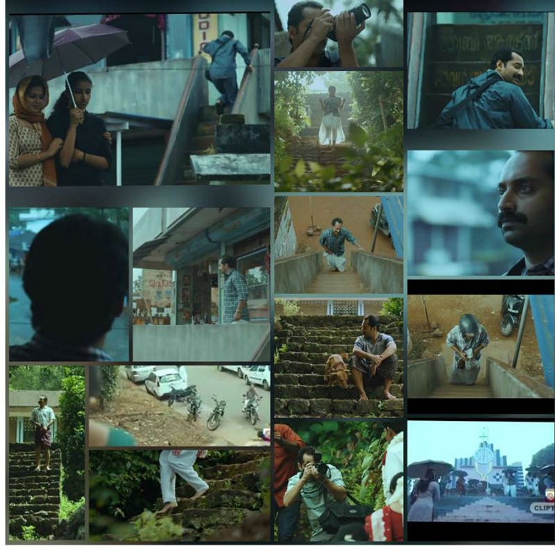മഹേഷ് തനിക്കു ചുറ്റുമുള്ള ലോകത്തെ കാണുന്നത് എപ്പോഴും ഒരു കയറ്റത്തില് നിന്നു കൊണ്ടാണ്. ഒന്നുകില് തന്റെ വീട്ടിലേക്കുള്ള പടവുകള്ക്ക് മുകളില് നിന്ന് താഴേക്ക് . അല്ലെങ്കില് തന്റെ 'ഭാവന' സ്റ്റുഡിയോയുടെ ഒരുനില മുകളിലെ കെട്ടിടത്തിന്റെ വരാന്തയില് നിന്ന് താഴേക്ക്. അയാളുടെ നോട്ടങ്ങള് എപ്പോഴും മുകളില് നിന്ന് താഴേക്കാണ്. ഇടുക്കി എന്ന ഗാനത്തിന്റെ രംഗങ്ങളില് ഒരു വിവാഹച്ചടങ്ങിന്റെ ഫോട്ടോ എടുക്കുന്ന മഹേഷിനെ കാണാം. വരനും വധുവും ഒരു ചെറിയ മണ്പടവുകള് കയറുന്നതു കാണുമ്പോള്, അടുത്തുനില്ക്കുന്നവരെയെല്ലാം തട്ടിമാറ്റിച്ചെന്ന് മഹേഷ് വധൂവരന്മാര് ഒന്നിച്ച് പടികള് കയറുന്നതിന്റെ പടമെടുക്കുന്നു. അയാളുടെ കണ്ണില് ഒരു ഫോട്ടോയെടുക്കാന് പറ്റിയ മികച്ച മൊമന്റ് അതായിരുന്നിരിക്കണം .
