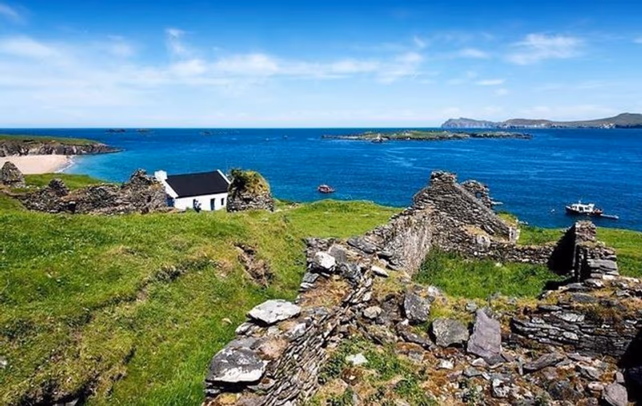 അയർലന്ഡിന്റെ പടിഞ്ഞാറൻ അറ്റത്താണ് ഗ്രേറ്റ് ബ്ലാസ്ക്കറ്റ് ദ്വീപ് സ്ഥിതി ചെയ്യുന്നത്. ദ്വീപിന്റെ ഒറ്റപ്പെടലും അസ്ഥിരമായ കാലാവസ്ഥയും കാരണം നിവാസികളുടെ സുരക്ഷ ഉറപ്പാക്കാൻ 1953 മുതൽ സർക്കാർ അത് ഒഴിപ്പിച്ചു. 160 -ഓളം ആളുകളാണ് ദ്വീപിൽ താമസിച്ചിരുന്നത്. കുടിയൊഴിപ്പിക്കലിനുശേഷം, നിവാസികളുടെ വീടുകൾ ഭൂരിഭാഗവും തുരുമ്പെടുത്ത് കിടന്നു. ഇപ്പോൾ അങ്ങോട്ടുള്ള ഏകമാർഗ്ഗം മെയിൻ ലാന്റ് ഡിംഗിളിൽ നിന്നുള്ള കടത്തുവള്ളത്തിലൂടെയാണ്. വിനോദസഞ്ചാരികൾ എത്തുന്നതും ഇത് വഴിയാണ്. എന്നാൽ കൊടുങ്കാറ്റ് വീശിത്തുടങ്ങുമ്പോൾ അത് അടക്കും. ദ്വീപിൽ മരങ്ങൾ കുറവാണെങ്കിലും ഇടയ്ക്കിടെ പെയ്യുന്ന മഴയിൽ അവിടം നിറയെ പച്ചപ്പാണ്. ഗ്രേ സീലുകൾ, വൈൽഡ്ഫ്ലവർ, പക്ഷികൾ എന്നിവ കൊണ്ട് സമൃദ്ധമാണ് ദ്വീപ്. വസന്തകാലത്തും വേനൽക്കാലത്തും ചിത്രശലഭങ്ങൾ പാറിപ്പറന്നു കളിക്കുന്നത് ഒരു ഹൃദ്യമായ കാഴ്ചയാണ്. ഭൂമിയിൽ അവശേഷിക്കുന്ന ഏറ്റവും ശാന്തമായ സ്ഥലങ്ങളിൽ ഒന്നാണ് ഇത്.