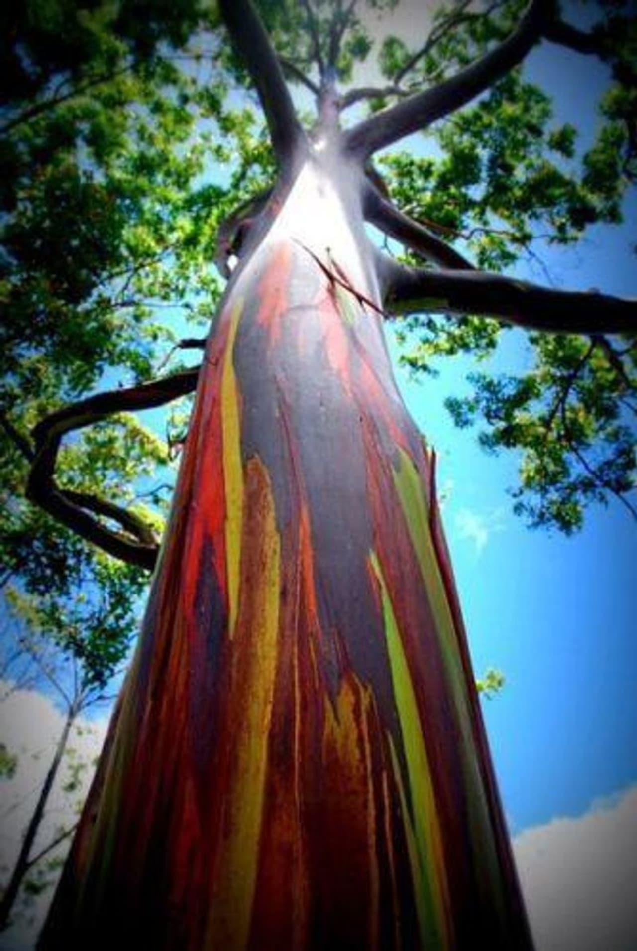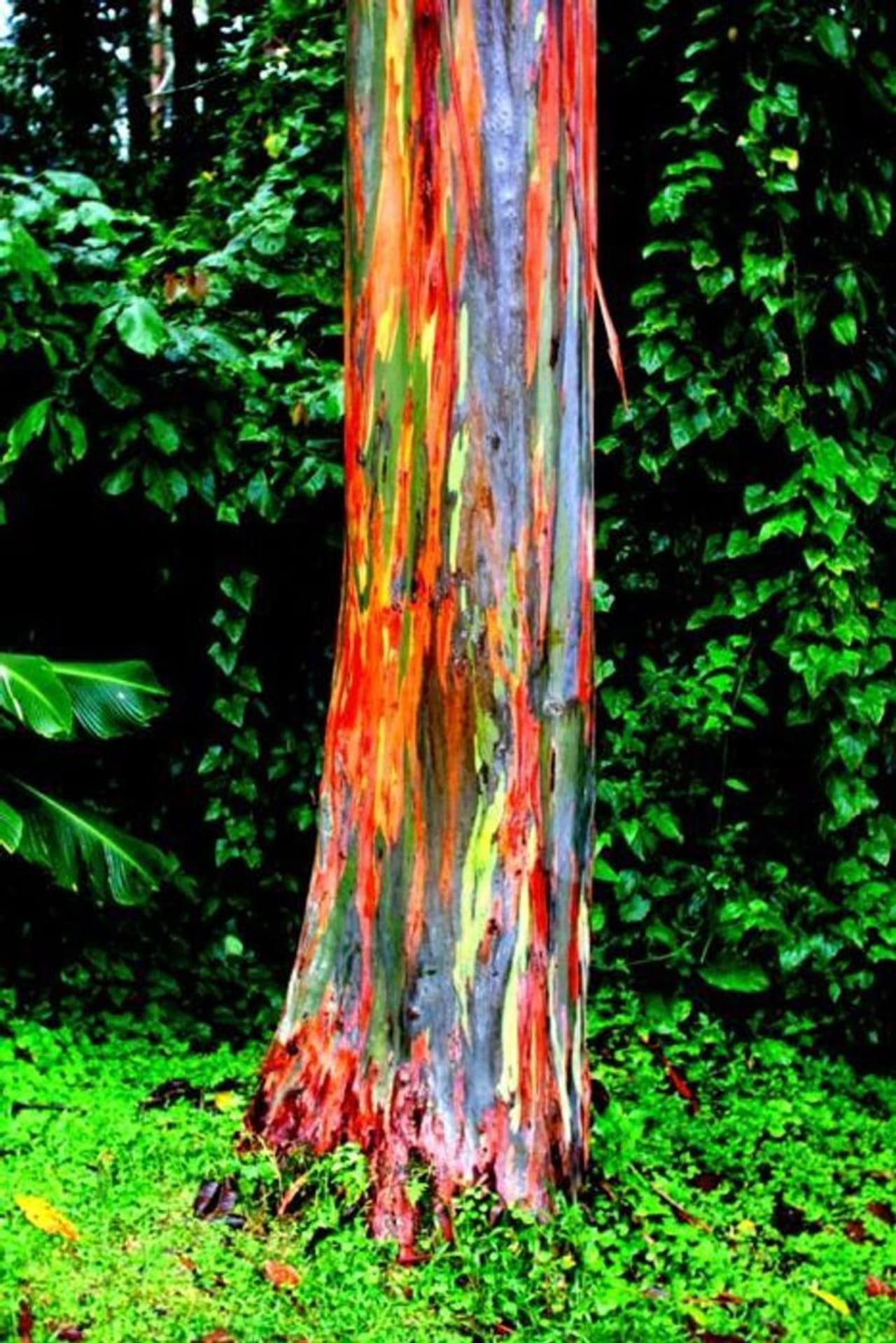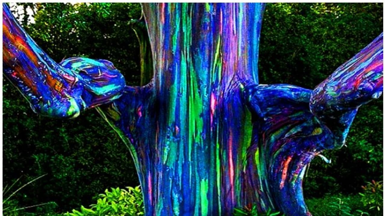 വൃക്ഷങ്ങളിൽ വിടരുന്ന പുഷ്പങ്ങളിലും, പഴങ്ങളിലും അവയുടെ ശരത്കാല ഇലകളിലും നമ്മൾ മനോഹരമായ നിറങ്ങൾ കാണാറുണ്ട്. പക്ഷേ, നിറമുള്ള മരത്തിൻ്റെ തടി ഒരു അപൂർവ കാഴ്ചയാണ്. ഓരോ മരവും നിറത്തിൽ വ്യത്യാസപ്പെട്ടിരിക്കുന്നു, പക്ഷേ, എല്ലായ്പ്പോഴും ആ മരം കാണാൻ നല്ല ഭംഗിയാണ്. കടുംപച്ച നിറത്തിൽ ആദ്യം കാണുന്ന ഈ മരത്തിൻ്റെ തടി പിന്നീട് നീല, പർപ്പിൾ, ഓറഞ്ച്, മെറൂൺ എന്നീ നിറങ്ങളിൽ കൂടുതൽ മനോഹരമാകുന്നു. മഴവില്ല് യൂക്കാലിപ്റ്റസ് അതിൻ്റെ പുറംതൊലി ഒറ്റയടിക്ക് ഉരിയുന്നില്ല. പക്ഷേ, വർഷം മുഴുവനും ഓരോ ഭാഗങ്ങളായി അതിൻ്റെ തൊലി അടർന്നു പോയ്കൊണ്ടിരിക്കുന്നു. അങ്ങനെ ഇത് ഒരു മഴവില്ലിൻ്റെ അത്ഭുതകരമായ പ്രതീതി ഉണ്ടാക്കുന്നു.
