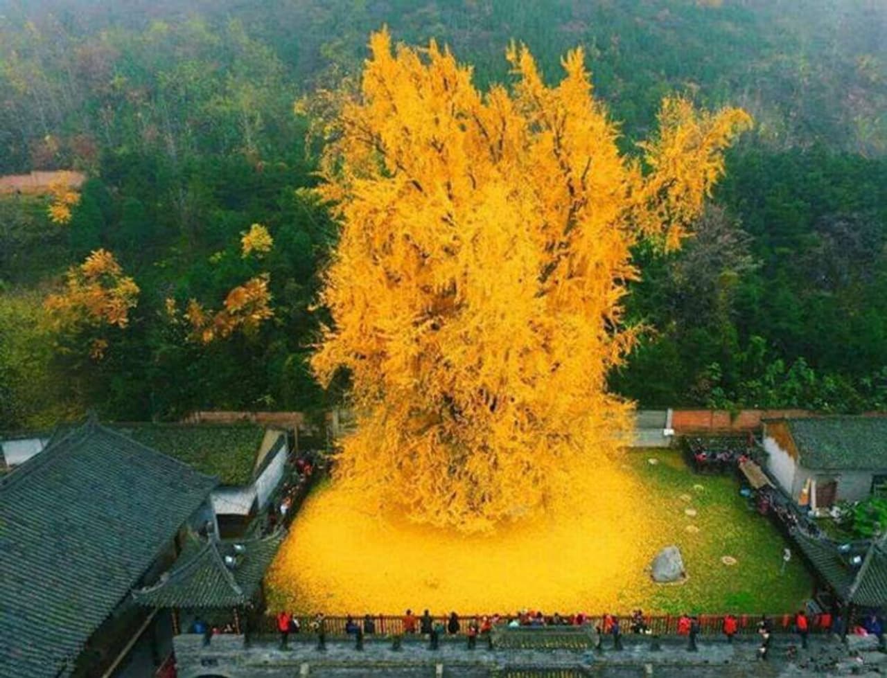 എല്ലാ വർഷവും, ഒക്ടോബർ അവസാനം, പതിനായിരക്കണക്കിന് ആളുകൾ ചൈനയിലെ ഒരു ബുദ്ധക്ഷേത്രത്തിലേക്ക് ഒഴുകി എത്തുന്നു. ക്ഷേത്രം കാണാനും, പ്രാർത്ഥിക്കാനും വേണ്ടി മാത്രമല്ല, അവർ അവിടെ വരുന്നത്. മറിച്ച് ജിങ്കോ ബിലോബ വൃക്ഷം അതിന്റെ മഞ്ഞ ഇലകൾ പൊഴിക്കുന്ന അതിമനോഹരമായ കാഴ്ച കാണാനും കൂടിയാണ്. ഇത് കാണാനെത്തുന്ന ആളുകളുടെ തിരക്ക് നിയന്ത്രിക്കാനാകാതെ ക്ഷേത്രത്തിന് ഒടുവിൽ റിസർവേഷൻ സൗകര്യം ഏർപ്പെടുത്തേണ്ടി വന്നു. മാത്രവുമല്ല ഇത് ഒരു നോക്ക് കാണാൻ മണിക്കൂറുകളോളമാണ് ആളുകൾ ക്ഷമയോടെ കാത്തിരിക്കുന്നത്.