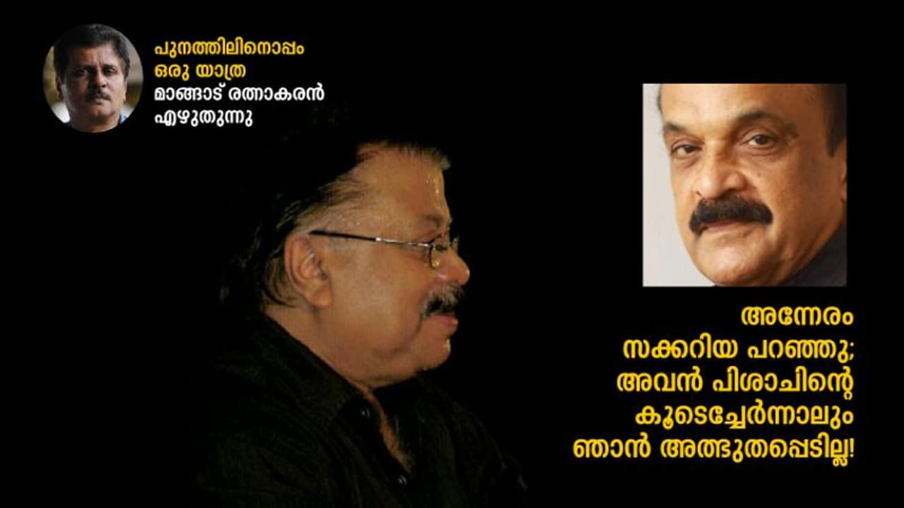 പുനത്തിൽ: സത്യം പറയ്യാ, എന്നെക്കാളും വലിയ കഥാകൃത്താണ് കറിയാച്ചൻ. തൊട്ടാൽ പൊന്നാക്കുന്ന ആളാണ് കറിയാച്ചൻ. ചെറുപ്പത്തിലെ ഗൃഹാന്തരീക്ഷം, ബൈബിൾ, അന്തംവിട്ട വായന, പിന്നെ അസാമാന്യമായ ബുദ്ധിയുമുണ്ട്. അതുകുറച്ച് കൂടിപ്പോയീന്നേ ഉള്ളൂ (പൊട്ടിച്ചിരി). സക്കറിയയെ വെല്ലുന്ന കഥാകൃത്ത് പുനത്തിൽ കുഞ്ഞബ്ദുള്ളയോ എം മുകുന്ദനോ അല്ല, സക്കറിയ മാത്രം.