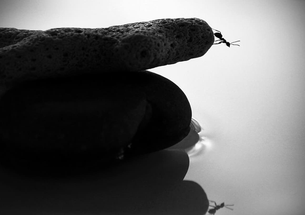 തോളിലെ സ്പര്ശമറിഞ്ഞ് പുറകോട്ട് തിരിയുമ്പോള് റാഷിദ്. കൈപ്പത്തിയുടെ നടുവില് ചുരുണ്ട് മരിച്ചുകിടക്കുന്ന, ചാരനിറമുള്ള കുറച്ചൊക്കെ വലുപ്പമുള്ള ഒരു ഉറുമ്പ്. അരുവിയിലെ വെള്ളമൊഴുകാത്ത ഭാഗത്തുനിന്ന് കിട്ടിയതാണത്രെ അത്. ''ഞാന് നോക്കുമ്പോള് ഇതിങ്ങിനെ മരിച്ചുകിടക്കുന്നു. ചുറ്റും എട്ട്-പത്ത് ഉറുമ്പുകള്. ചില നിമിഷങ്ങള് അതിനുചുറ്റും നിന്നിട്ട് അവരെല്ലാം പോയി. അടുത്തനിമിഷംതന്നെ ഒരു ഉറുമ്പു വന്ന് ഇതിനെയുമെടുത്ത് താഴേക്ക് നടന്ന് കുറച്ചകലെ കൊണ്ടുവെച്ചു. എന്നിട്ട് മടങ്ങി. അപ്പോള് താഴെനിന്നും മറ്റൊരുറുമ്പ് വന്ന് ഇതിനെയെടുത്ത് നടന്ന് ഒഴുകുന്ന വെള്ളത്തിന് ഒരല്പം ദൂരെവെച്ച് തിരിച്ചുനടന്നു. ഞാന്നിതവിടെ നിന്നെടുത്തു. അവരിനിയും അങ്ങിനെ ചെയ്യുമോ എന്ന് നോക്കിയാലോ?''