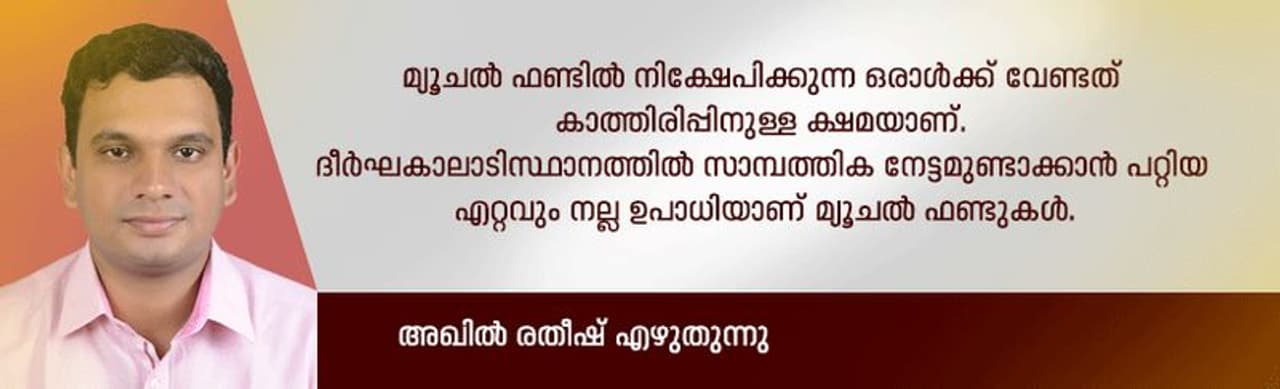 മ്യൂചൽ ഫണ്ടിൽ നിക്ഷേപിക്കുന്ന ഒരാൾക്ക് വേണ്ടത് കാത്തിരിപ്പിനുള്ള ക്ഷമയാണ്. ദീർഘകാലാടിസ്ഥാനത്തിൽ സാമ്പത്തിക നേട്ടമുണ്ടാക്കാൻ പറ്റിയ എറ്റവും നല്ല ഉപാധിയാണ് മ്യൂചൽ ഫണ്ടുകൾ.
