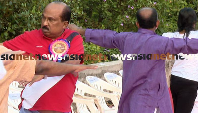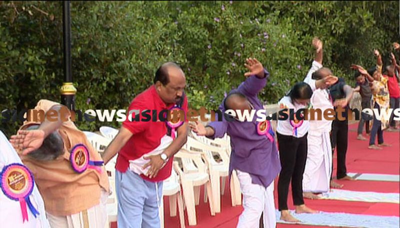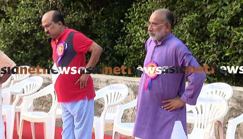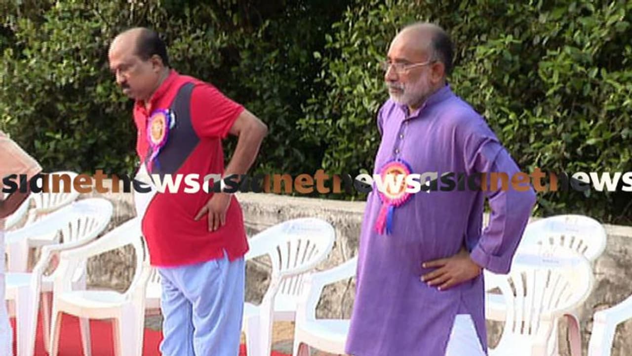 അൽപ സമയം കഴിഞ്ഞപ്പോഴേക്കും ഇടതു സ്ഥാനാർത്ഥി പി രാജീവും പരിപാടിക്കെത്തി. യോഗ ചെയ്തില്ലെങ്കിലും ആശംസകൾ നേർന്ന് പി രാജീവ് മടങ്ങി.