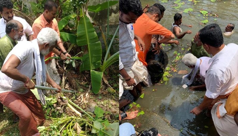 പൊള്ളുന്ന ചൂടിനെെ വകവെക്കാതെയായിരുന്നു കഴിഞ്ഞ ദിവസം ബിജെപി സ്ഥാനാർത്ഥി കുമ്മനം രാജശേഖരൻ കുളം നന്നാക്കാനിറങ്ങിയത്. സേവനത്തിനൊപ്പം വോട്ട് ചോദ്യവും.