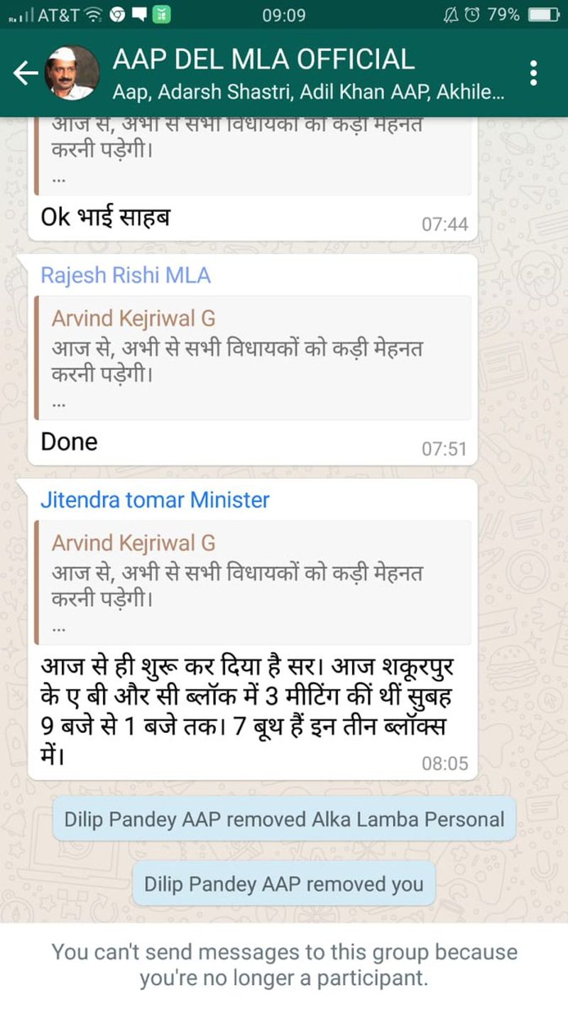 ഒഡിഷ മുഖ്യമന്ത്രി നവീൻ പട്നായികിനെ അഭിനന്ദിച്ചതിനും കെജ്രിവാളിനെ ഗ്രൂപ്പിൽ വിമർശിച്ചതിനുമാണ് ആം ആദ്മി പാർട്ടിയുടെ ഔദ്യോഗിക ഗ്രൂപ്പിൽ നിന്ന് അൽക ലാംബയെ പുറത്താക്കിയത്.