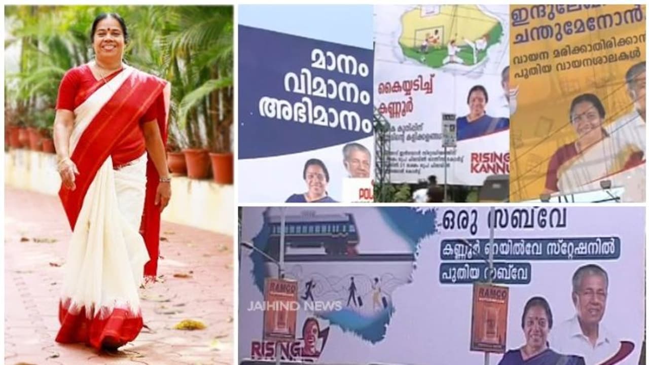 കണ്ണൂർ വിമാനത്താവളം മുതൽ ബീച്ച് ആധുനികവൽക്കണവും റെയിൽവേ സ്റ്റേഷൻ നവീകരണവും സ്കൂളുകളുടെ സൗകര്യം വർധിപ്പിക്കലും വരെ കണ്ണൂരിന്റെ വികസന നേട്ടങ്ങൾ എണ്ണിയെണ്ണിപ്പറഞ്ഞുള്ള കൂറ്റൻ ബോർഡുകൾ സർക്കാരിന്റെയോ പാർട്ടിയുടേതോ അല്ല. റൈസിങ് കണ്ണൂരെന്ന പേരിൽ പി കെ ശ്രീമതിയെ മാത്രം ഉയർത്തിക്കാട്ടിയുള്ളതാണ് മണ്ഡലത്തിലുടനീളം ഉള്ള ബോർഡുകൾ.