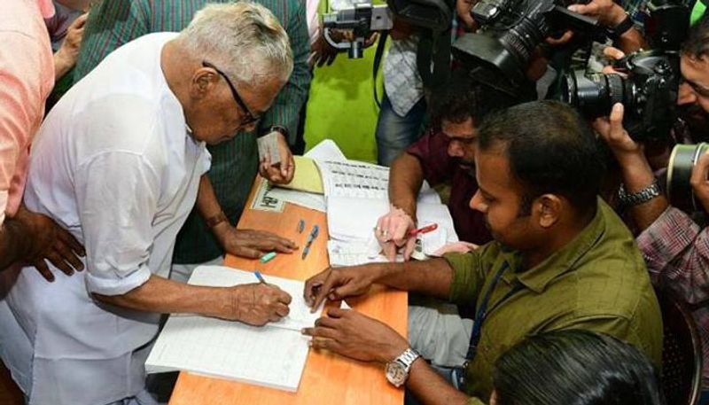 വി എസ് അച്യുതാനന്ദൻ വോട്ട് രേഖപ്പെടുത്തുന്നു