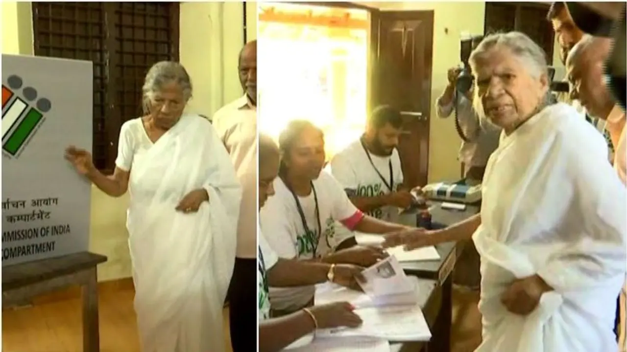 ആലപ്പുഴ: ജെഎസ്എസ് നേതാവ് കെ ആർ ഗൗരിയമ്മ ആലപ്പുഴ എസ്ഡിവി ഗേൾസ് സ്കൂളിൽ വോട്ട് രേഖപ്പെടുത്തി. ഉച്ചതിരിഞ്ഞ് മൂന്ന് മണിയോടെ പാർട്ടി പ്രവർത്തകർക്കും സഹായികൾക്കുമൊപ്പമാണ് ഗൗരിയമ്മ ഇരുന്നൂറ്റാറാം നമ്പർ ബൂത്തിൽ വോട്ട് ചെയ്യാനെത്തിയത്.