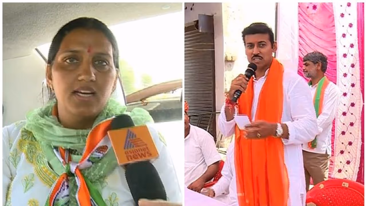ജയ്പൂര്: രാജസ്ഥാന്റെ മരുമകളായി പ്രചാരണ രംഗത്ത് നിറഞ്ഞു നിൽക്കുകയാണ് ഒളിംപിക്സ് താരം കൃഷ്ണപൂനിയ. ജയ്പൂര് റൂറൽ മണ്ഡലത്തിൽ കേന്ദ്ര മന്ത്രിയും ഒളിന്പ്യനുമായ രാജ്യവര്ദ്ധൻ സിംഗ് റാത്തോഡിനെയാണ് കൃഷ്ണപൂനിയ നേരിടുന്നത്. കായിക മത്സരം പോലെ ആവേശം നിറഞ്ഞതാണ് ഈ തെരഞ്ഞെടുപ്പെന്ന് കൃഷ്ണപൂനിയ ഏഷ്യാനെറ്റ് ന്യൂസിനോട് പറഞ്ഞു.