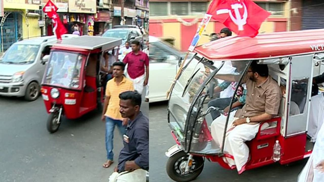 ഫ്ലക്സ് നിരോധനത്തിന്റെ ചുവട് പിടിച്ച് കൂടുതൽ പരിസ്ഥിതി സൗഹൃദ പ്രചാരണ രീതിയുടെ അടുത്ത പടി. വാഹന റാലിക്ക് മോട്ടോർ വാഹനങ്ങൾക്ക് പകരം വൈദ്യുതി ഉപയോഗിച്ച് ഓടുന്ന കാറുകളും ഇരു ചക്ര വാഹനങ്ങളും. അംഗ പരിമിതർക്ക് എം പി ഫണ്ടിൽ നിന്ന് അനുവദിച്ച മുച്ചക്ര വാഹനങ്ങളും റാലിയിൽ അണിനിരന്നു.