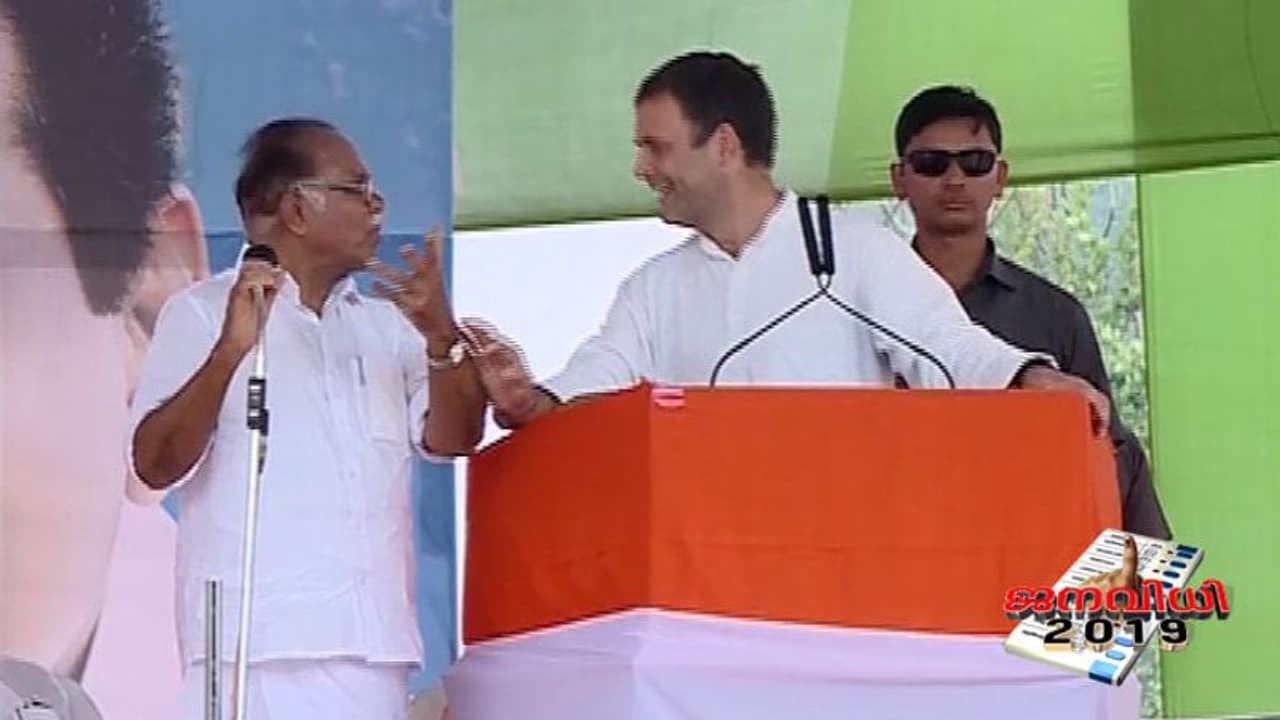 താന് സംസാരിച്ച മൈക്കിന് ശബ്ദം പോര എന്ന് രാഹുലും പറഞ്ഞതോടെ മൈക്കുമെടുത്ത് പരിഭാഷകന് പിജെ കുര്യന് രാഹുലിന് തൊട്ട് അടുത്ത് എത്തി.ഒടുവില് രാഹുല് ഗാന്ധിതന്നെ കുര്യനെ വിളിച്ച് അടുത്ത് നിര്ത്തി. ഏതാണ്ട് മുന്നോളം തവണ കുര്യന് വേണ്ടി രാഹുല് താന് പറഞ്ഞത് ആവര്ത്തിക്കേണ്ടി വന്നു.