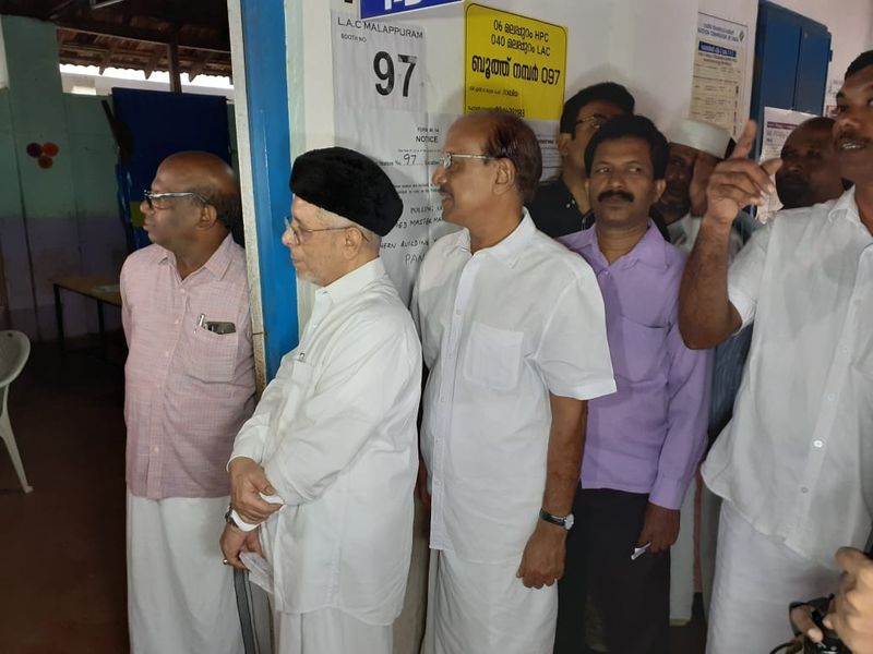 തങ്ങൾക്ക് തൊട്ടു പിന്നിൽ തന്നെ മണ്ഡലത്തിലെ ലീഗ് സ്ഥാനാർത്ഥി കുഞ്ഞാലിക്കുട്ടിയുണ്ടായിരുന്നു. ഒപ്പം മകൻ ആഷിഖും. രണ്ടാമനായി കുഞ്ഞാലിക്കുട്ടിയും വോട്ട് ചെയ്തു. വോട്ട് ചെയ്തിറങ്ങിയ ഇരുവർക്കും തികഞ്ഞ വിജയ പ്രതീക്ഷ. ഇനി ഭൂരിപക്ഷം മാത്രമേ നോക്കണ്ടൂ എന്ന് കുഞ്ഞാലിക്കുട്ടിയും തങ്ങളും.