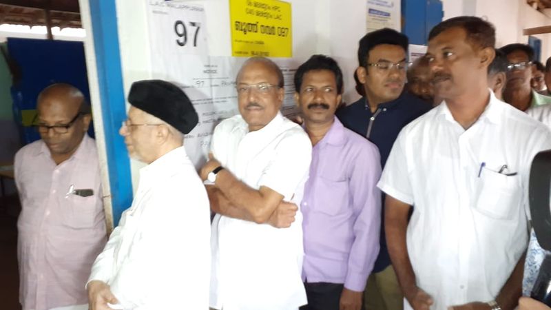 മലപ്പുറം: പാണക്കാട് സികെഎംഎം സ്കൂളിൽ ഇത്തവണയും പതിവ് തെറ്റിയില്ല. വോട്ടെടുപ്പ് തുടങ്ങുന്നതിന് അര മണിക്കൂർ മുന്നേ തന്നെ മണ്ഡലത്തിലെ കൊടപ്പനക്കൽ തറവാട്ടിൽ നിന്ന് മണ്ഡലത്തിലെ വിഐപി സ്ഥാനാർത്ഥിയെത്തി. പാണക്കാട് ഹൈദരലി ശിഹാബ് തങ്ങൾ. വരിയിൽ ആദ്യ സ്ഥാനം തങ്ങൾക്ക് തന്നെ. വരി നിന്ന്, കൃത്യം ഏഴ് മണിയ്ക്ക് തന്നെ തങ്ങൾ ചൂണ്ടു വിരലിൽ മഷി പതിപ്പിച്ചു.