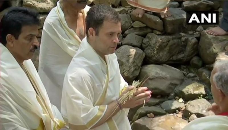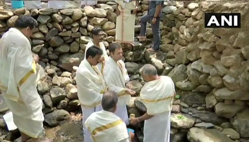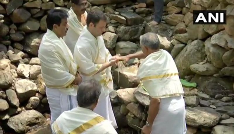 വയനാട്: വയനാട്ടിൽ തെരഞ്ഞെടുപ്പ് പ്രചാരണത്തിനെത്തിയ രാഹുൽ ഗാന്ധി തിരുനെല്ലി ക്ഷേത്രത്തിലെത്തി. അച്ഛൻ രാജീവ് ഗാന്ധിയുടെ ചിതാഭസ്മം നിമജ്ജനം ചെയ്ത പാപനാശത്തിലെത്തി പിതൃതര്പ്പണ ചടങ്ങുകൾ നടത്തി. നെഹ്റുവിനും ഇന്ദിരാ ഗാന്ധിക്കും രാജീവ് ഗാന്ധിക്കും ഒപ്പം പുൽവാമയിൽ കൊല്ലപ്പെട്ട സൈനികർക്കും സംസ്ഥാനത്ത് കൊല്ലപ്പെട്ട കോൺഗ്രസ് പ്രവർത്തകർക്കും വേണ്ടിയും രാഹുൽ ബലിയിട്ടു.