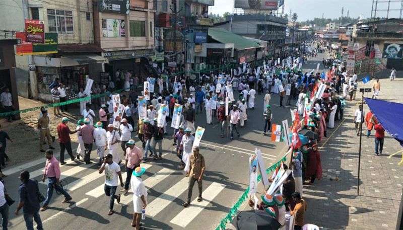 ഒരു കിലോമീറ്ററിലും താഴെ ദൂരമാണ് ഗ്രൗണ്ടിൽ നിന്ന് കളക്ട്രേറ്റിലേക്ക് ഉള്ളത്. വളരെ പതുക്കെയാണ് രാഹുൽ കയറിയ വാഹനം കളട്ക്രേറ്റിലേക്ക് നീങ്ങുന്നത്. അത്ര വലിയ തിരക്കാണ് വയനാട് നഗരത്തിൽ ഉള്ളത്. പൊതു ജനങ്ങളും പാര്ട്ടി പ്രവര്ത്തകരുമെല്ലാം റോഡിൽ തിങ്ങി നിറഞ്ഞ് നിൽക്കുന്ന അവസ്ഥയാണ്.