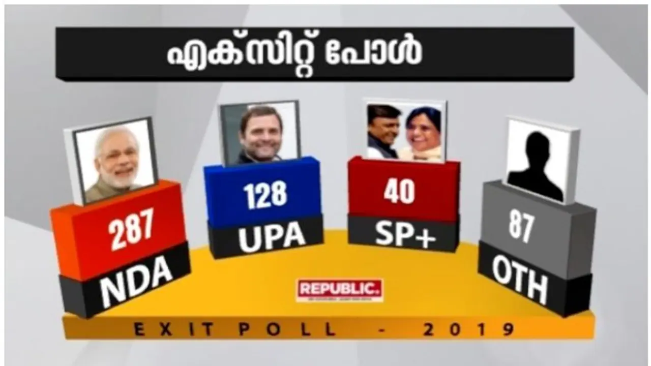 300 സീറ്റുകളിലേറെ നേടി എൻഡിഎ അധികാരത്തിലെത്തുമെന്നാണ് റിപ്പബ്ലിക് ടിവി ജൻ കി ബാത്തുമായി ചേർന്ന് നടത്തിയ എക്സിറ്റ് പോൾ സർവേ പ്രവചിക്കുന്നത്. എൻഡിഎ 295 മുതൽ 305 സീറ്റുകൾ വരെ നേടുമെന്നാണ് പ്രവചനം. യുപിഎ 122 മുതൽ 124 സീറ്റുകൾ വരെ നേടും. മഹാസഖ്യം 26 സീറ്റുകൾ വരെ നേടിയേക്കാം. മറ്റുള്ളവർ 87 സീറ്റുകൾ വരെ നേടുമെന്നും ജൻ കി ബാത്ത് പ്രവചിക്കുന്നു.