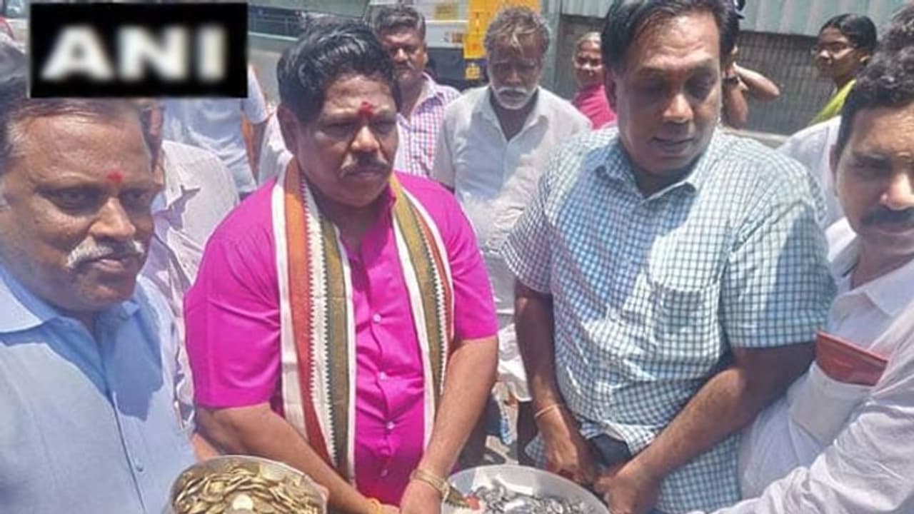 അമ്മ മക്കൾ നാഷണൽ പാർട്ടി (എഎംഎൻപി) സ്വതന്ത്ര സ്ഥാനാർത്ഥി കുപ്പൾജി ദേവദോസ് ആണ് തെരഞ്ഞെടുപ്പിൽ വ്യത്യസ്തനായി നാണയങ്ങൾ നൽകിയത്.