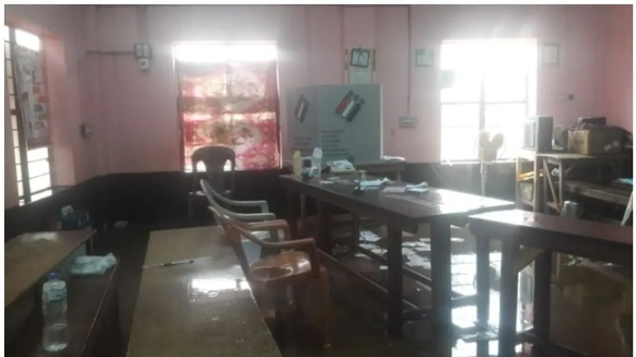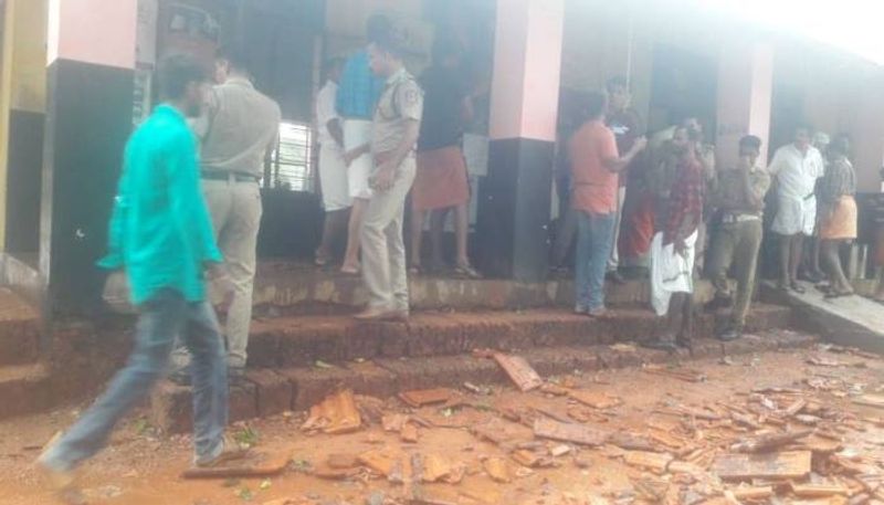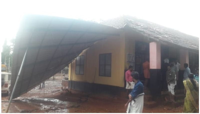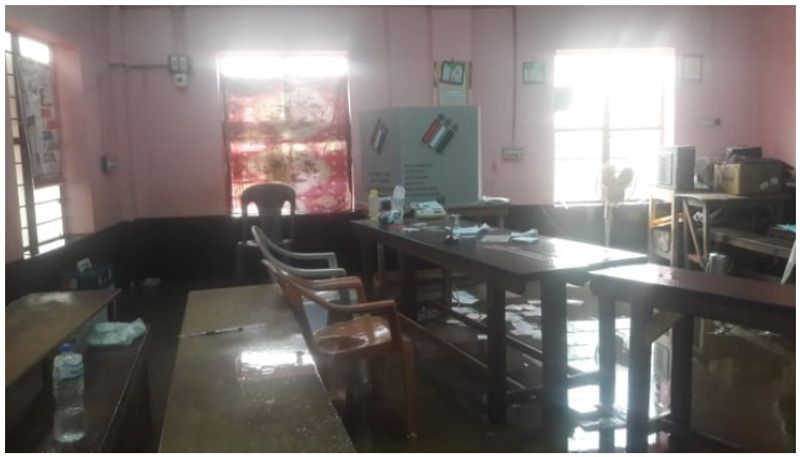 പോളിംഗ് ബൂത്തിലെ മേൽക്കൂരയുടെ ഓടുകൾ ഇളകി പറന്നു പോയി. വോട്ടിംഗ് മെഷീനും വിവിപാറ്റും മഴയിൽ നനഞ്ഞു കുതിര്ന്നു.