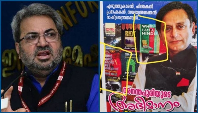 'വൈ ഐയാം എ ഹിന്ദു' എന്ന പുസ്തകത്തിന്റെ കവർ വച്ചുള്ള പോസ്റ്ററിനെതിരെ ബിജെപി പരാതി നൽകിയപ്പോൾ പത്മനാഭസ്വാമി ക്ഷേത്രത്തിന്റെ പടം വച്ച് പോസ്റ്ററടിച്ചത് എന്തിനെന്ന് തിരിച്ചടിച്ച് തരൂർ.