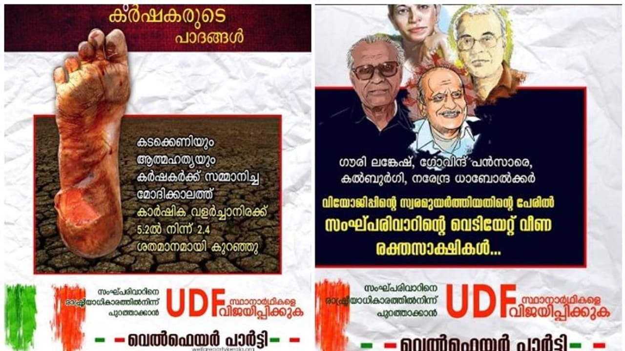 സിപിഎമ്മിന്റെ കർഷകസംഘടനായ കിസാൻ സഭ നടത്തിയ സമരത്തിൽ നിന്നുള്ള ചിത്രങ്ങൾ ഉപയോഗിച്ച് വെൽഫെയർ പാർട്ടി യുഡിഎഫിന് വോട്ട് ചോദിക്കുന്നു. സിപിഐയുടെ രക്തസാക്ഷി ഗോവിന്ദ് പൻസാരെയുടെ ചിത്രവും വെൽഫെയർ പാർട്ടി യുഡിഎഫിന്റെ തെരഞ്ഞെടുപ്പ് പ്രചാരണത്തിന് ഉപയോഗിക്കുന്നുണ്ട്.
