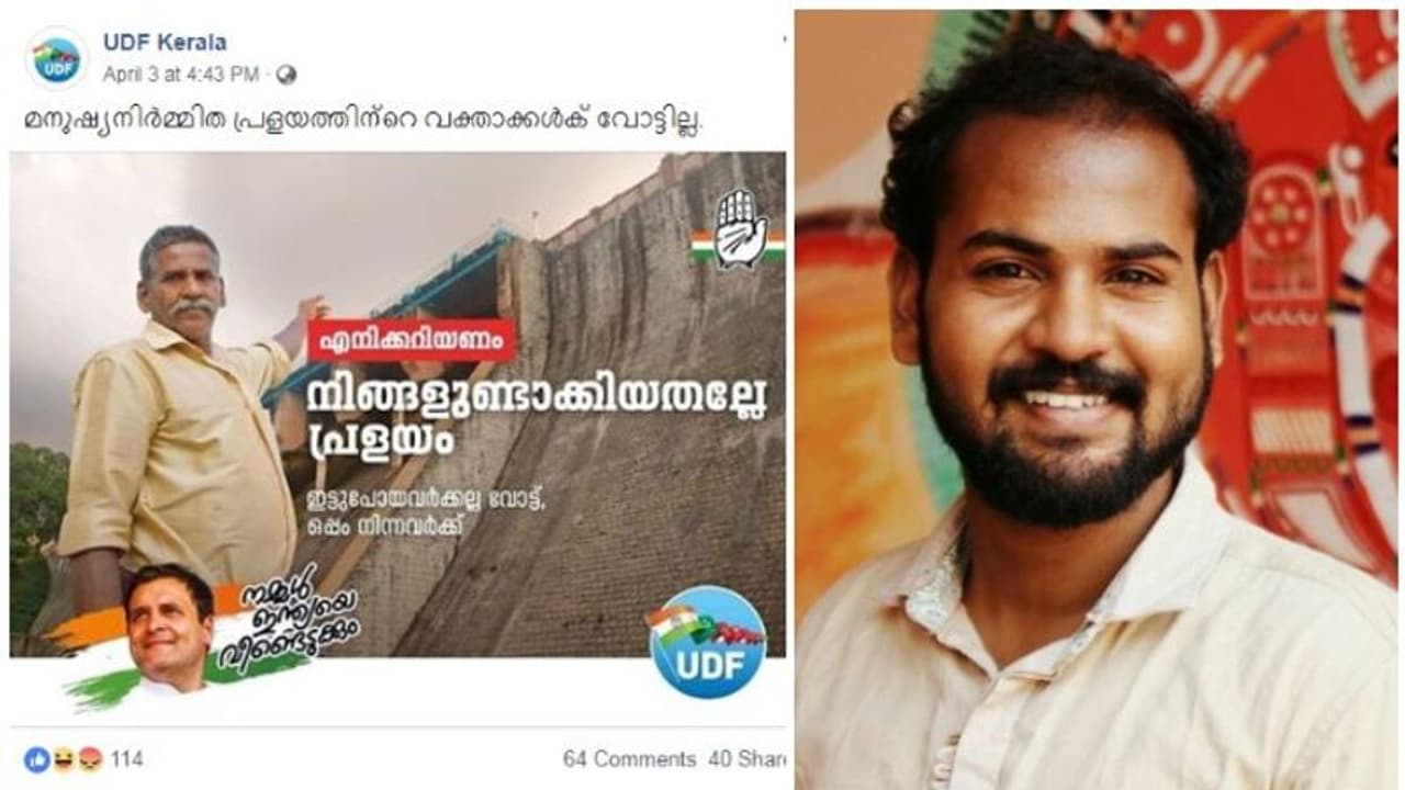 'എനിക്കറിയണം, നിങ്ങളുണ്ടാക്കിയതല്ലേ പ്രളയം' എന്ന അടിക്കുറിപ്പിനൊപ്പമാണ് അണക്കെട്ടിലേക്ക് കൈചൂണ്ടി നില്ക്കുന്ന റാഫേലിന്റെ ചിത്രമുള്ള പോസ്റ്റര് യുഡിഎഫ് കേരളം എന്ന ഫേസ്ബുക്ക് പേജില് പ്രത്യക്ഷപ്പെട്ടത്. ഇതിനു പിന്നാലെയാണ് തന്റെ അമ്മാവന്റെ ചിത്രം ദുരുപയോഗിച്ചതായി ആരോപിച്ച് ഡി വൈ എഫ് ഐ നേതാവ് ഫേസ്ബുക്കില് രംഗത്തുവന്നത്.
