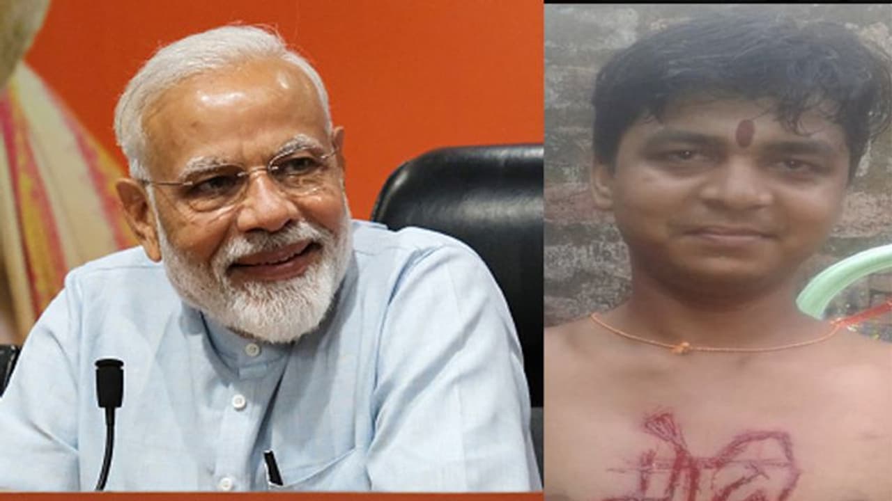 ലോക്സഭ തെരഞ്ഞെടുപ്പിൽ മോദി നേടിയ ഉജ്ജ്വ വിജയത്തെ തുടർന്നാണ് യുവാവ് ഇത്തരമൊരു സാഹസത്തിനൊരുങ്ങിയത്. തെരഞ്ഞെടുപ്പിൽ ബിജെപി ജയിക്കുമെന്ന് ഉറപ്പായപ്പോൾ നാട് മുഴുവനും സോനു മധുരം വിതരണം ചെയ്തിരുന്നു. എന്നാൽ മോദിയുടെ വിജയം മധുരം വിതരണം ചെയ്ത് മാത്രം ആഘോഷിച്ചാൽ പോരെന്ന് സോനു തീരുമാനിച്ചു. ഒരുപാട് ചിന്തിച്ചതിന് ശേഷം തന്റെ ശരീരത്തിൽ മോദിയുടെ പേര് കുറിച്ചിടാമെന്ന തീരുമാനത്തിൽ സോനു എത്തുന്നത്.