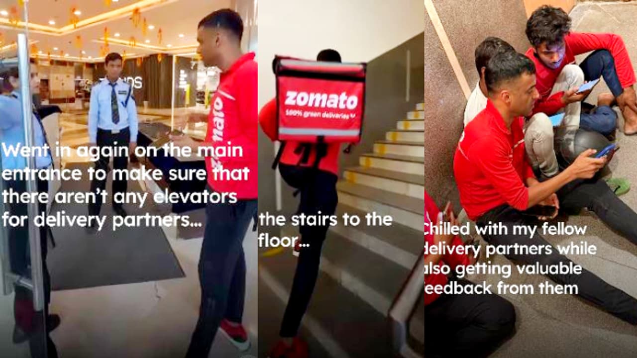മൂന്നാം നിലയിൽ സ്റ്റെപ്പ് കയറി എത്തിയപ്പോൾ അഭിമുഖീകരിച്ചത് അതിലും ദയനീയമായ കാര്യമായിരുന്നു. ഡെലിവറി പങ്കാളികൾക്ക് മാളിൽ പ്രവേശിക്കാൻ കഴിയില്ല. ഓർഡറുകൾ സ്വീകരിക്കാൻ ഗോവണിപ്പടിയിൽ കാത്തിരിക്കണമെന്നും സൊമാറ്റോ സിഇഒ പറയുന്നു ഫുഡ് ഓർഡർ എടുക്കാൻ കാത്തിരിക്കുന്ന മറ്റ് ഡെലിവറി ബോയ്സിനൊപ്പം നിലത്തിരുന്ന് അവരുമായി സംസാരിക്കുന്ന ചെയ്യുന്ന ഗോയലിൻ്റെ ഫോട്ടോ ഇൻസ്റ്റാഗ്രാമിൽ വൈറലാണ്.