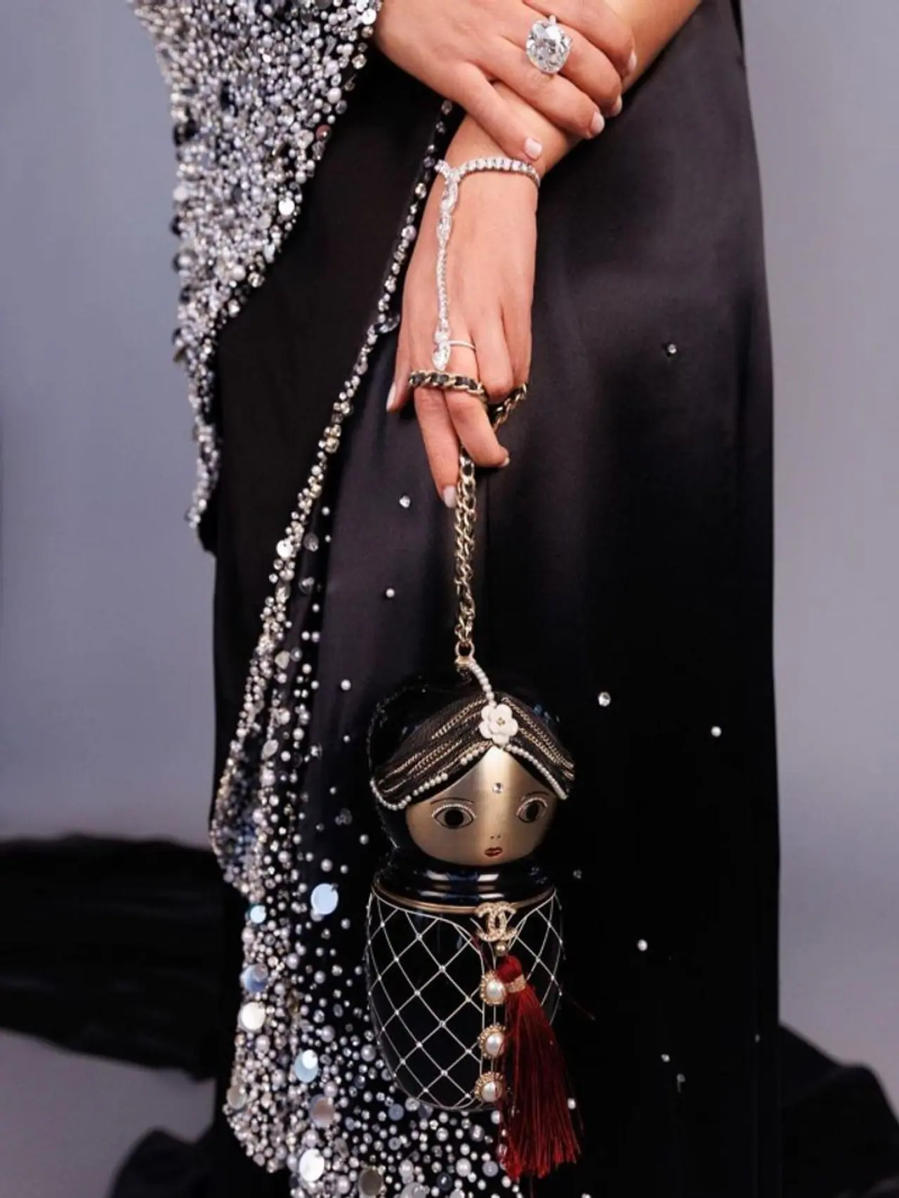 കറുത്ത ഗൗണിൽ മുന്നതിളങ്ങിയ ഇഷ അംബാനിയുടെ കൈയ്യിലുണ്ടായിരുന്ന ഡോൾ ബാഗാണ് ഏവരുടെയും ശ്രദ്ധ ആകർഷിച്ചത്.