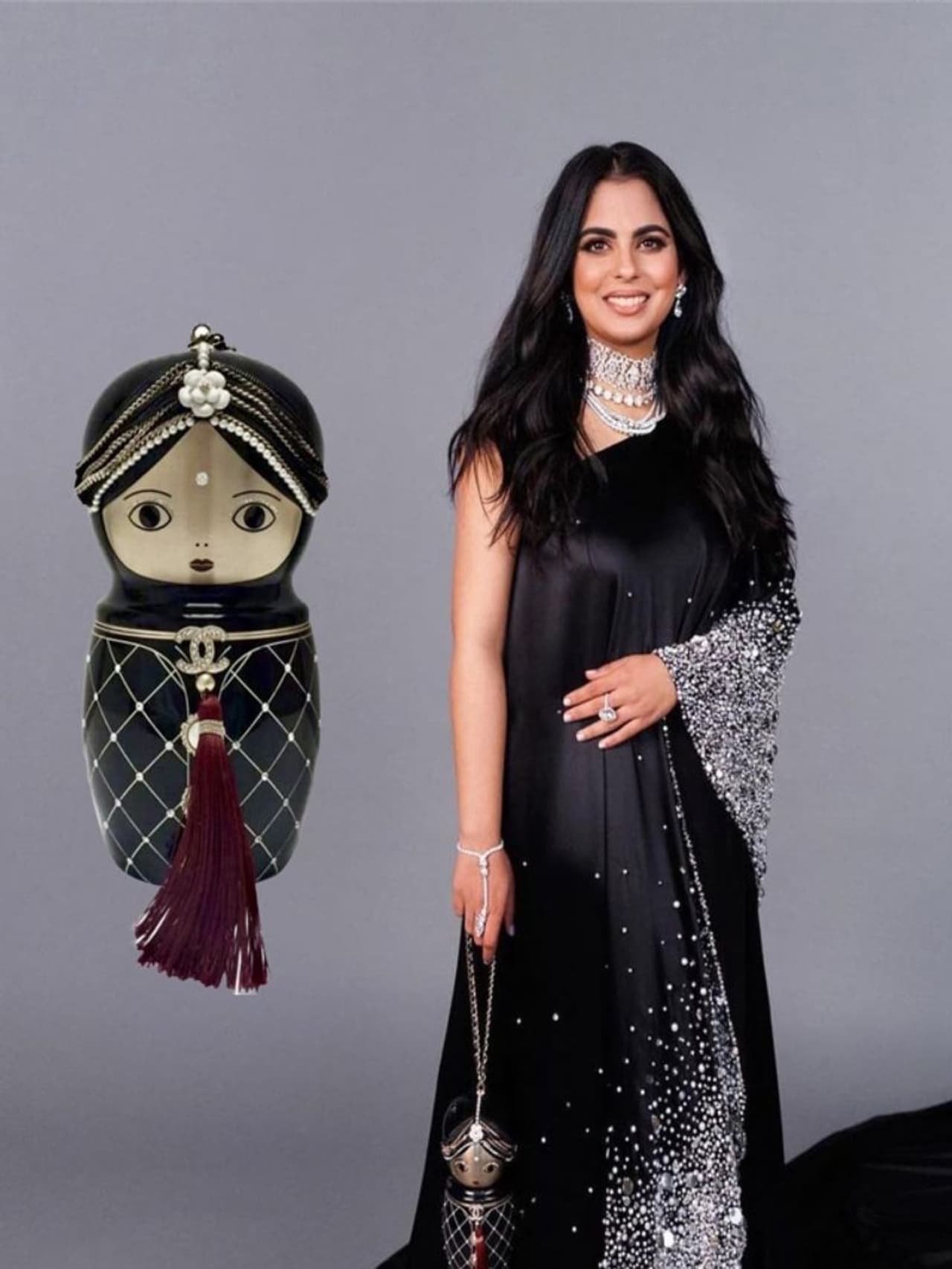 ഇന്ത്യൻ പാരമ്പര്യത്തോടുള്ള ഇഷ്ടം പ്രകടിപ്പിക്കുന്ന രീതിയിലുള്ളതായിരുന്നു ഇഷയുടെ ഡിസൈനർ ബാഗ്. പരമ്പരാഗത ഇന്ത്യൻ ബ്രൈഡൽ ലുക്കിൽ നിന്ന് പ്രചോദനം ഉൾക്കൊണ്ട് നിർമ്മിച്ചതാണ് ഇത്. ഈ ഡോൾ ബാഗിന്റെ വില എത്രയാണെന്ന് അറിയേണ്ടേ? 24 ലക്ഷം രൂപ!