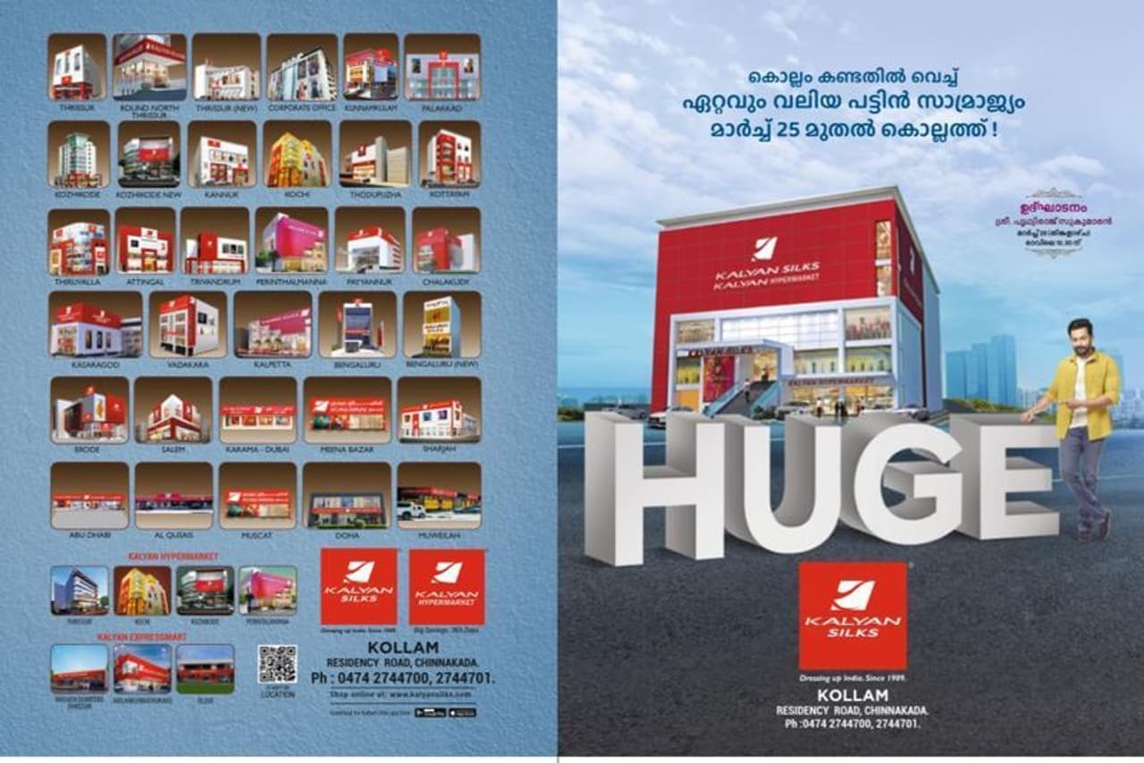 'ലോകത്തിലെ ഏറ്റവും വലിയ' സിൽക്ക് സാരി ഷോറൂമായ കല്യാൺ സിൽക്സ് കൊല്ലത്തിന്റെ വാണിജ്യ ചരിത്രത്തിൽ ഒരു പുതിയ അധ്യായത്തിന് തുടക്കം കുറിക്കുന്നു. ദക്ഷിണ കേരളത്തിലെ 'ഏറ്റവും വലിയ ഷോപ്പിങ്ങ് സമുച്ചയ'ത്തിന് മാർച്ച് 25-ന് കൊല്ലം ചിന്നക്കടയിൽ തിരശ്ശീല ഉയരുകയാണ്.