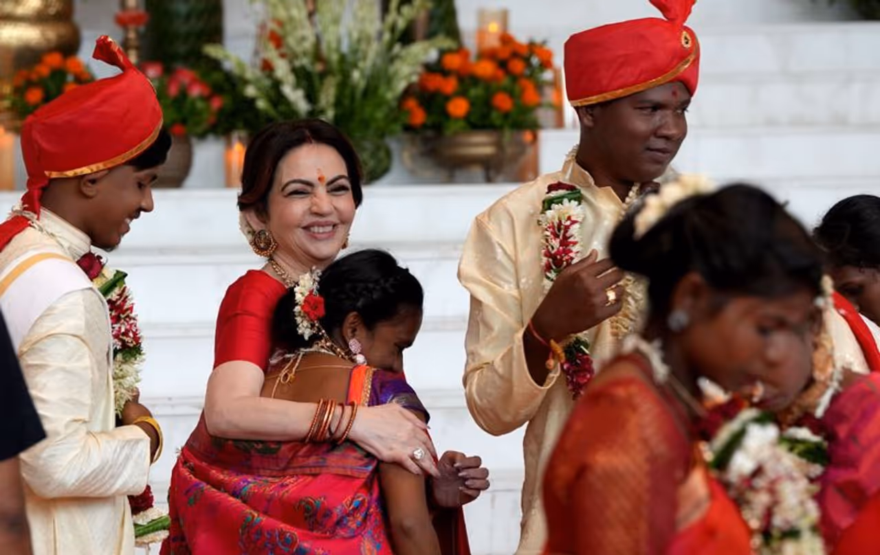 അനന്ത് അംബാനിയുടെയും രാധിക മർച്ചൻ്റിൻ്റെയും വിവാഹത്തിന് പത്ത് ദിവസം മാത്രം ശേഷിക്കെ, അംബാനി കുടുംബം നിരാലംബരായ ദമ്പതികൾക്കായി സമൂഹ വിവാഹ ചടങ്ങ് നടത്തി.