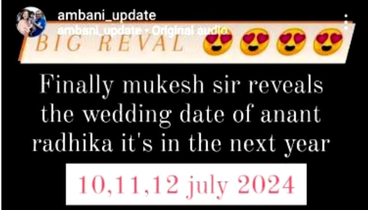 മുകേഷ് അംബാനിയുടെയും നിത അംബാനിയുടെ മകൻ അനന്ത് അംബാനിയുടെ വിവാഹ തിയതി പ്രഖ്യാപിച്ചു. ഈ വർഷം ജനുവരിയിലായിരുന്നു അനന്ത് അംബാനിയുടെയും രാധിക മർച്ചന്റിന്റെയും വിവാഹനിശ്ചയം നടന്നത്. മുകേഷ് അംബാനിയുടെ ഫാൻ പേജുകളിലാണ് വിവാഹ ആഘോഷങ്ങളെ പറ്റിയുള്ള പുതിയ വാർത്തകൾ എത്തിയിരിക്കുന്നത്.
