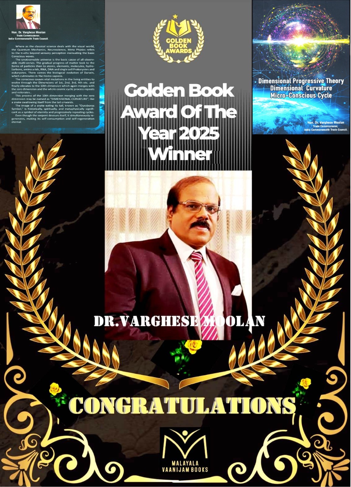 2024 ഫെബ്രുവരിയിൽ ബ്രിട്ടീഷ് പാർലിമെന്റിൽ 60 രാജ്യങ്ങളിൽ നിന്നുള്ള വിദഗ്ദരുടെ സദസ്സിൽ Dimensional Progressive Theory എന്ന ശാസ്ത്ര പ്രബന്ധം ഡോ. വർഗീസ് മൂലൻ അവതരിപ്പിച്ചത് നീണ്ടു നിന്ന കരഘോഷങ്ങളിലൂടെയാണ് സദസ്സ് സ്വീകരിച്ചത്.. ഈ പുസ്തകം പിന്നീട് ഷാർജ അന്തർദ്ദേശീയ പുസ്തകമേളയിൽ ഷെയ്ഖ് അബ്ദുള്ള അൽ മർസൂഖി പ്രസാധനം ചെയ്തു. 2025-ലെ അന്തർദ്ദേശീയ "Golden Book Award" ഈ പുസ്തകത്തിന് ലഭിച്ചു.