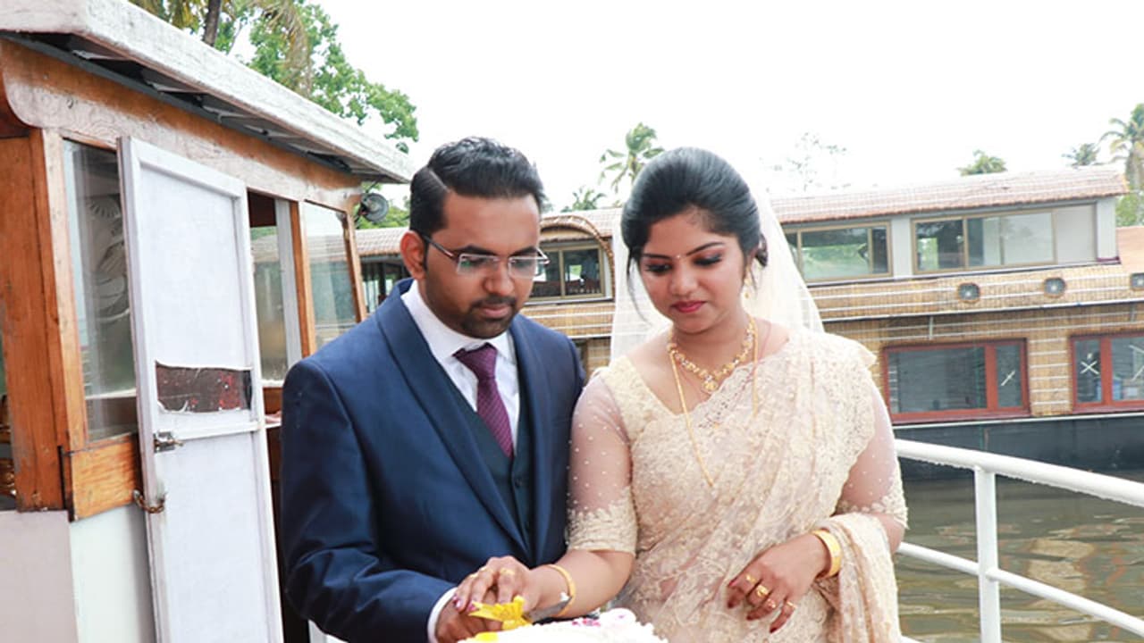 പുന്നമട സെന്റ് മേരീസ് പള്ളിയില് താലികെട്ടിന് ശേഷം വാദ്യമേളങ്ങളുടെ അകമ്പടിയോടെയാണ് വധൂവരന്മാരെ ജങ്കാറിലേക്ക് ആനയിച്ചത്. ജങ്കാറില് പ്രത്യേക ക്വയറും ഒരുക്കിയിരുന്നു. ഇവരുവരും ചേര്ന്ന് കേക്ക് മുറിച്ച് മധുരം പങ്കിട്ടതോടെ ചടങ്ങുകള് ആരംഭിച്ചു. ഒപ്പം ചാറ്റല് മഴയുമെത്തി. പ്രിയപ്പെട്ടവര് നവ ദമ്പതികളെ അനുമോദിച്ചു. കായല്ക്കരയിലുള്ള കനോയ് വില്ലയില് പ്രത്യേകം തയാറാക്കിയ പന്തലിലായിരുന്നു വിവാഹസല്ക്കാരം നടന്നത്.