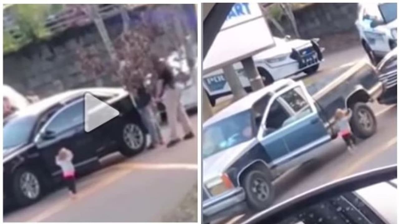 ഇയാളാണ് പ്രതിയെന്ന നിഗമനത്തില് പൊലീസ് വാഹനം തടഞ്ഞ് അറസ്റ്റ് നടത്തി. ഇതേസമയം കാറില് രണ്ട് വയസുള്ള കുട്ടിയും ഒരു വയസുള്ള മറ്റൊരു കുട്ടിയുമുണ്ടായിരുന്നു. അച്ഛനെ പൊലീസ് വിലങ്ങ് വയ്ക്കുന്നത് കണ്ട രണ്ടുവയസുകാരി കാറിന് പുറത്തേക്കിറങ്ങി. രണ്ട് കൈകളും മുകളിലേക്കുയര്ത്തി പൊലീസിന് നേരെ നടന്നു. വീഡിയോ പകര്ത്തിയവരടക്കം ഞെട്ടലോടെയാണ് സംഭവം കണ്ടുനിന്നത്. കുട്ടിയെ പിന്നീട് ഒരു പൊലീസ് ഉദ്യോഗസ്ഥന് എടുത്ത് നില്ക്കുന്നതും ദൃശ്യങ്ങളില് കാണാം.