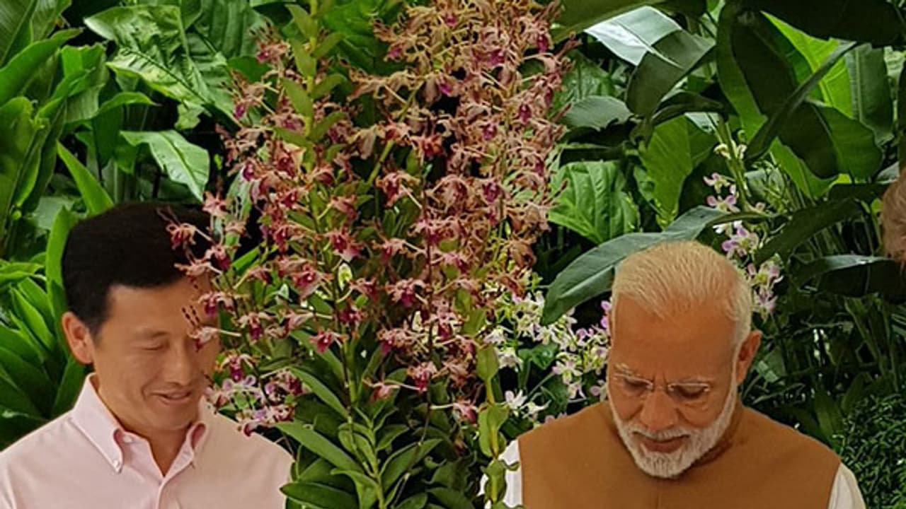 സന്ദര്ശനത്തിനിടെ പ്രധാനമന്ത്രിയെ അതിശയിപ്പിച്ചു കൊണ്ടാണ് സിംഗപ്പൂര് ദേശീയ ഉദ്യാന അധികാരികള് പ്രഖ്യാപനം നടത്തിയത്. ഓര്ക്കിഡിന് ഇന്ത്യന് പ്രധാനമന്ത്രിയുടെ പേര് നല്കിയതുമായി ബന്ധപ്പെട്ട ഔദ്യോഗിക രേഖയും അവര് സമ്മാനിച്ചു. പിന്നീട് ഇത് സംബന്ധിച്ച് വിദേശകാര്യ മന്ത്രാലയ വക്താവ് രവീഷ് കുമാര് ട്വിറ്ററിലും കുറിച്ചു. വളരെ ആരോഗ്യമുളള ട്രോപ്പിക്കല് ഓര്ക്കിഡിന് 38 സെന്റീ മീറ്റര് നീളവും, 14 മുതല് 20 വരെ പൂക്കളുമുണ്ട്.