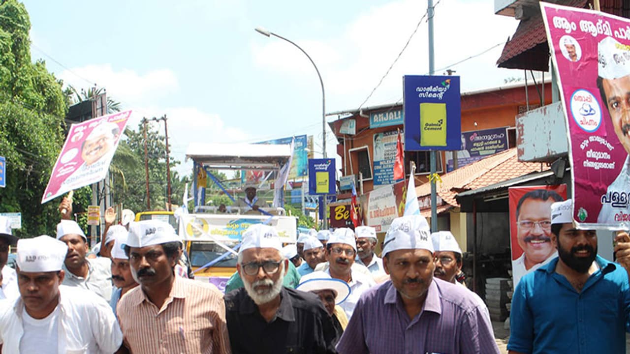 വിവരാവകാശ പ്രവര്ത്തകനും പാര്ട്ടിയുടെ നിയോജക മണ്ഡലം കണ്വീനറുമായ രാജീവ് പള്ളത്തിനെയാണ് ആം ആദ്മി പാര്ട്ടി മത്സരത്തിനിറങ്ങിയത്. മണ്ഡലത്തില് ചൂടുപിടിച്ച പ്രചാരണവും നടത്തി. അഴിമതി നിറഞ്ഞ കേരളത്തില് ദില്ലി മോഡല് ബദലാണ് തങ്ങള് ഉയര്ത്തുന്നതെന്നും ചെങ്ങന്നൂര് മാജിക്കാണ് ലക്ഷ്യമിടുന്നതെന്നും പാര്ട്ടി നേതാക്കള് പറഞ്ഞു. എന്നാല് നാമനിര്ദ്ദേശ പത്രിക സമര്പ്പിച്ച് ചിഹ്നം അനുവദിച്ച് വന്നപ്പോള് ആം ആദ്മി പാര്ട്ടിക്ക് ചൂലിന് പകരം തൊപ്പിയാണ് കിട്ടിയത്. ദേശീയ, സംസ്ഥാന പാര്ട്ടി പദവിയില്ലാത്തവര്, തെരഞ്ഞെടുപ്പ് വിജ്ഞാപനം വന്ന് മൂന്ന് ദിവസത്തിനകം ഏത് ചിഹ്നം വേണമെന്ന് അറിയിക്കണമെന്നാണ് കേന്ദ്ര തെരഞ്ഞെടുപ്പ് കമ്മീഷന്റെ ചട്ടം. ആം ആദ്മി പാര്ട്ടി ഇത് പാലിച്ചിരുന്നില്ല. തുടര്ന്ന് ചൂല് തന്നെ വേണമെന്നാവശ്യപ്പെട്ട് നിയമനടപടികള്ക്ക് ഒരുങ്ങിയെങ്കിലും അതും വിജയിച്ചില്ല. ഇതോടെ ചിഹ്നമല്ല ആശയമാണ് ജനം വിലയിരുത്തുന്നതെന്ന പ്രഖ്യാപനത്തോടെ പ്രചാരണം തുടങ്ങി.