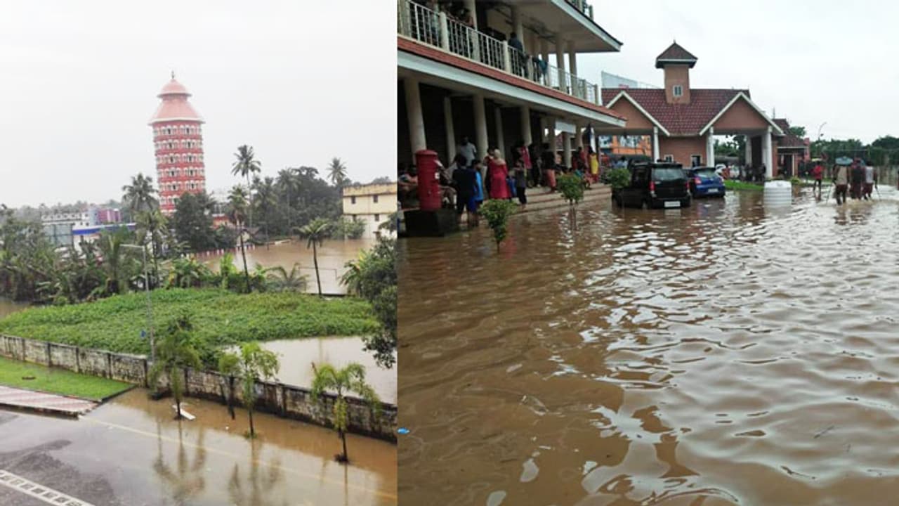 അഖില്- "ഒരു ബോട്ട് വന്നിരുന്നു ഞങ്ങളെ ഷിഫ്റ്റ് ചെയ്യാന്. പക്ഷേ അത് വണ്ടത്ര വലിപ്പമുള്ള ബോട്ട് ആയിരുന്നില്ല. ഇത്രയും പേരെ ഷിഫ്റ്റ് ചെയ്യാന് പറ്റില്ല. ആകെ 400 വിദ്യാര്ഥികളുണ്ട് ഇവിടെ. അതില് മുന്നൂറിലധികം പെണ്കുട്ടികളാണ്. നിലവില് യാത്രാസൗകര്യങ്ങള് ഒന്നുമില്ല. ഞങ്ങളിപ്പോള് ഒറ്റപ്പെട്ട അവസ്ഥയിലാണ്. റോഡ് മാര്ഗ്ഗം സഞ്ചരിക്കാന് പറ്റില്ല. ബോട്ടിലേ സഞ്ചരിക്കാന് പറ്റൂ. നേവിയെയും മറ്റും അറിയിച്ചിട്ടുണ്ട്. പക്ഷേ ആരും എത്തിയിട്ടില്ല. രക്ഷാപ്രവര്ത്തനം പല സ്ഥലങ്ങളിലായി നടക്കുന്നതുകൊണ്ട് എത്താന് താമസിക്കുമെന്നാണ് കിട്ടിയ അറിയിപ്പ്. എന്നാലും എത്രയും പെട്ടെന്ന് എത്താമെന്ന് അവര് പറഞ്ഞിട്ടുണ്ട്. കൂട്ടത്തില് ഒരു കുട്ടിക്ക് ശന്നി വന്നു. മോശമാണ് അവസ്ഥ. സുരക്ഷിതമല്ലാത്ത അവസ്ഥയാണ്. ഇനിയും മഴ തുടര്ന്നാല് ഇവിടെ തുടരുക അപകടകരമാണ്. ഒന്നാംനിലയിലേക്ക് വെള്ളം കയറാന് തുടങ്ങുകയാണ്. കുട്ടികളെല്ലാം ഇപ്പോള് രണ്ടാംനിലയിലാണ് ഉള്ളത്. ഇന്ന് രാവിലെ മുതലാണ് യൂണിവേഴ്സിറ്റി ഒറ്റപ്പെട്ട അവസ്ഥയിലെത്തിയത്."