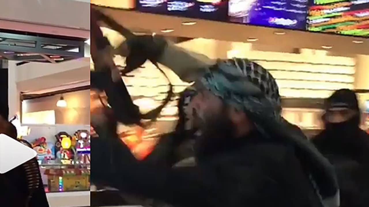 കുതിരപ്പുറത്ത് തോക്കും വാളുമായി 'ഐഎസ് ഭീകരര്‍' ഷോപ്പിങ് മാളില്‍, പേടിച്ചരണ്ട് ജനങ്ങള്‍
