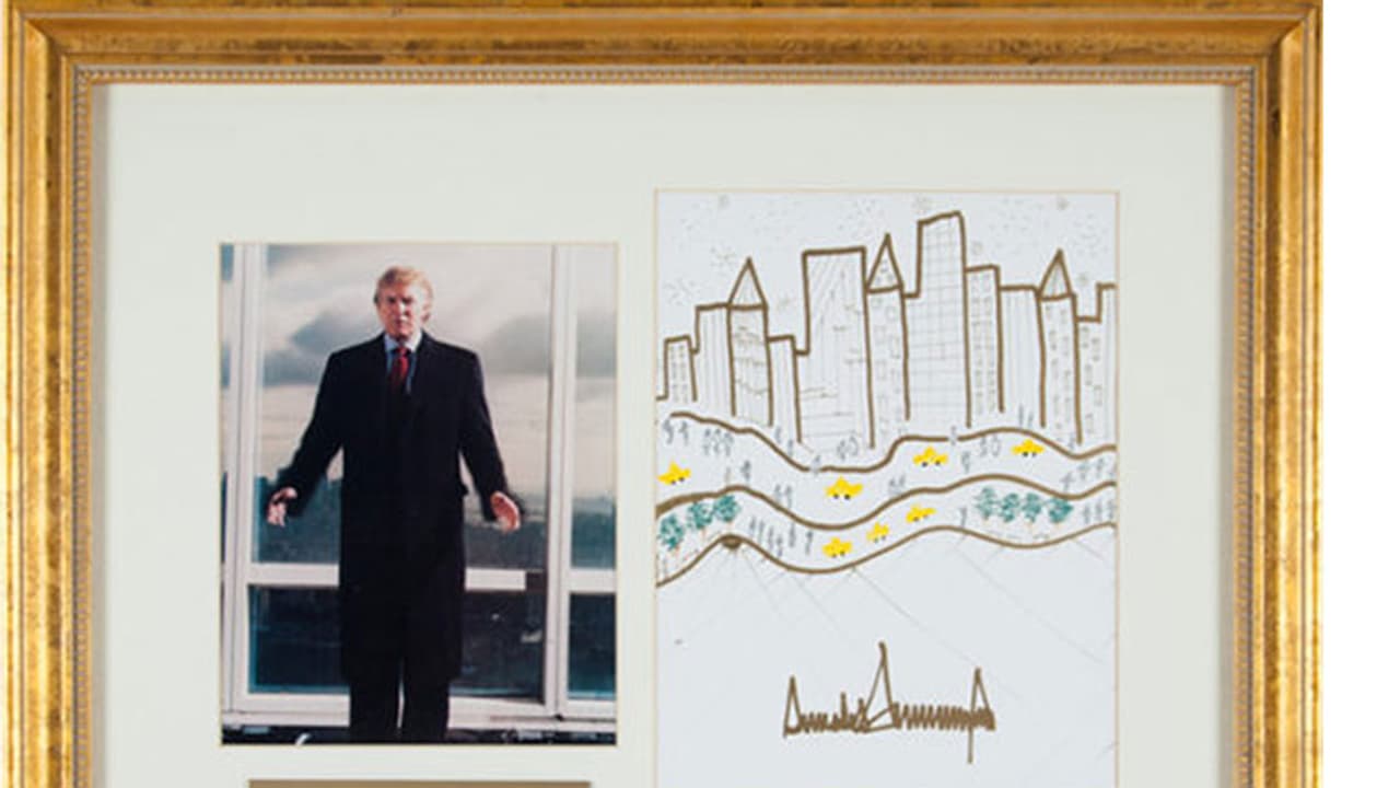 കറുത്ത മാര്ക്കര് പേനയില് വരച്ച ചിത്രത്തില് അടിയില് സുവര്ണ്ണ നിറത്തില് പ്രസിഡന്റിന്റെ ഒപ്പും രേഖപ്പെടുത്തിയിരിക്കുന്നു. മാന്ഹാട്ടന് ഭൂമികയില് ചെറിയ മാറ്റങ്ങളും ചിത്രകാരന് ട്രംപ് വരുത്തി. വാള് സട്രീറ്റ് ഇടം പിടിക്കുന്നില്ലെങ്കിലും ഇപ്പോഴത്തെ അധികാരകേന്ദ്രങ്ങളില് ശദ്ധാകേന്ദ്രമായ ട്രംപ് ടവര് ചിത്രത്തിന്റെ മധ്യഭാഗത്ത് ഇടം പിടിച്ചു. ഒരു സന്നദ്ധ സംഘടനയുടെ ചടങ്ങിലാണ് പ്രസിഡന്റ് ചിത്രം വരച്ച് നല്കിയത്. 10,000 ഡോളര് അടിസ്ഥാന വില ഇട്ടിരിക്കുന്ന ചിത്രം ടെകസ്സാസില് ഡിസംബര് രണ്ടിന് ലേലത്തിന് വയ്ക്കും.