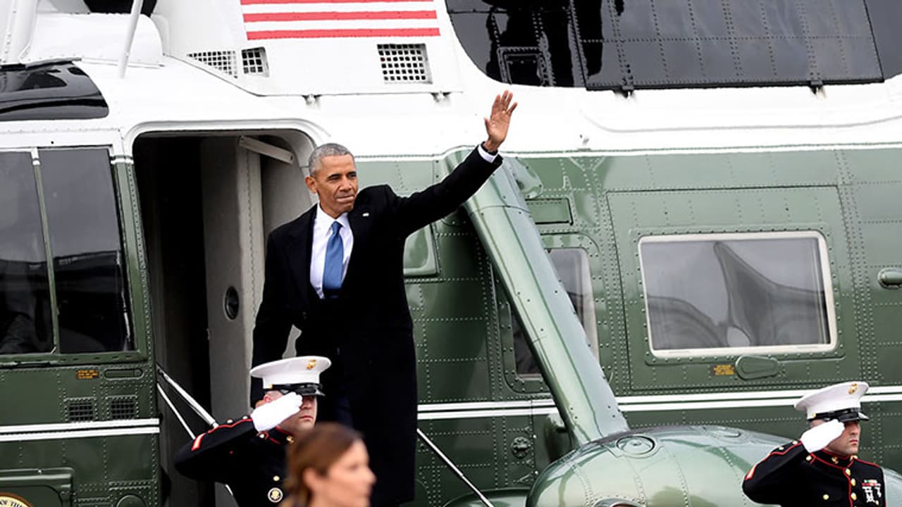 വൈറ്റ് ഹൗസില് പുതിയ പ്രസിഡന്റായ ട്രംപിനേയും ഭാര്യയേയും സ്വീകരിച്ചുകൊണ്ടാണ് പ്രസിഡന്റ് ബരാക് ഒബാമയുടെ അവസാന ഔദ്യോഗിക ദിനം തുടങ്ങിയത്. പിന്നീട് വൈറ്റ് ഹൗസിലെ ബ്ലൂ റൂമില് ചായസല്ക്കാരം. സത്യപ്രതിജ്ഞാ ചടങ്ങിന് കാപ്പിറ്റോള് ഹില്ലിലേക്ക് ട്രംപിനേയും മെലാനിയയേും രണ്ടുപേരും അനുഗമിച്ചു. ട്രംപിന്റെ സത്യപ്രതിജ്ഞാ ചടങ്ങിനുശേഷം ഒബാമയും മിഷേലും ആന്ഡ്രൂസ് വ്യോമത്താവളത്തിലാണെത്തിയത്. തമാശകള് പറഞ്ഞും ട്രംപില് പ്രതീക്ഷ അര്പ്പിച്ചുമായിരുന്നു ഒബാമയുടെ അവസാന പ്രസംഗം.