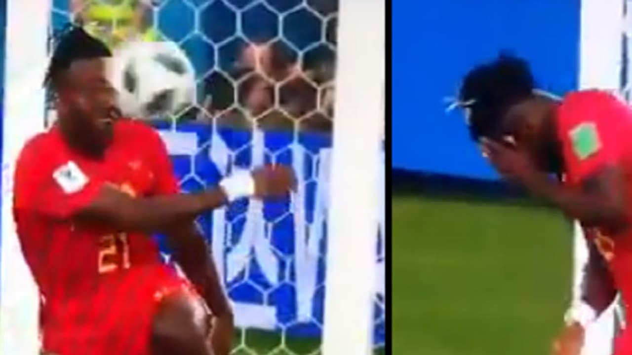 ബെല്‍ജിയം- ഇംഗ്ലണ്ട് മത്സരത്തിനിടെ അദ്‌നന്‍ ജാനുസാജിന്റെ ഗോള്‍ ആഘോഷത്തിനിടെയാണ് മിഷു ബാറ്റ്ഷ്വായിക്ക് മുഖമടക്കി അടിക്കിട്ടിയത്.