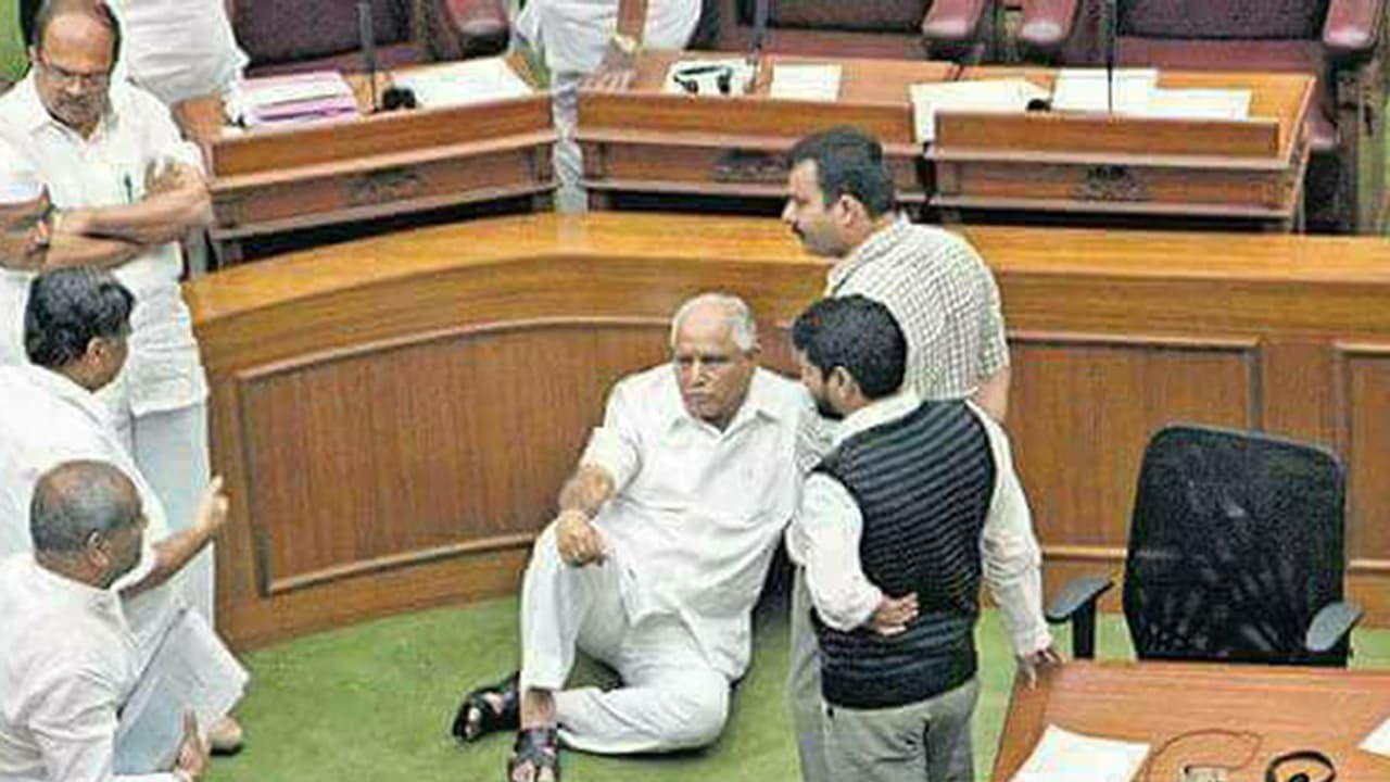 സംഭവബഹുലമായിരുന്നു കര്ണ്ണാടകം ഉറ്റു നോക്കിയ ശനിയാഴ്ച. രാവിലെ മാധ്യമപ്രവര്ത്തകരെ കണ്ടപ്പോഴും ഭൂരിപക്ഷത്തിന്റെ കാര്യത്തില് യെദ്യൂരപ്പയ്ക്ക് ഒരു സംശയവുമല്ലായിരുന്നു. പത്ത് മണിയോടെ ഹൈദരാബാദിലേക്ക് നാടുകടത്തിയെ എംഎല്മാരെ കോണ്ഗ്രസും ജെഡിഎസും തിരികെ എത്തിച്ചു. എംഎല്എമാരുടെ സത്യപ്രതിജ്ഞ സഭയില് തുടങ്ങിയപ്പോഴും രണ്ട് പേര് അവിടെ ഇല്ലായിരുന്നു. ഉച്ചവരെ 195 പേര്. ചില നേതാക്കള് ശുഭമുഹൂര്ത്തിലേക്ക് സത്യപ്രതിജ്ഞ മാറ്റിവച്ചതായിരുന്നു കാരണം. ഇതിനിടെ നഗരത്തിലെ ഹോട്ടലില് കോണ്ഗ്രസില് നിന്ന് കളം മാറിയ രണ്ട് എംഎല്എമാരുണ്ടെന്ന സൂചനയെത്തുടര്ന്ന് വിപ്പ് നല്കാന് നേതാക്കള് കുതിച്ചെത്തി.